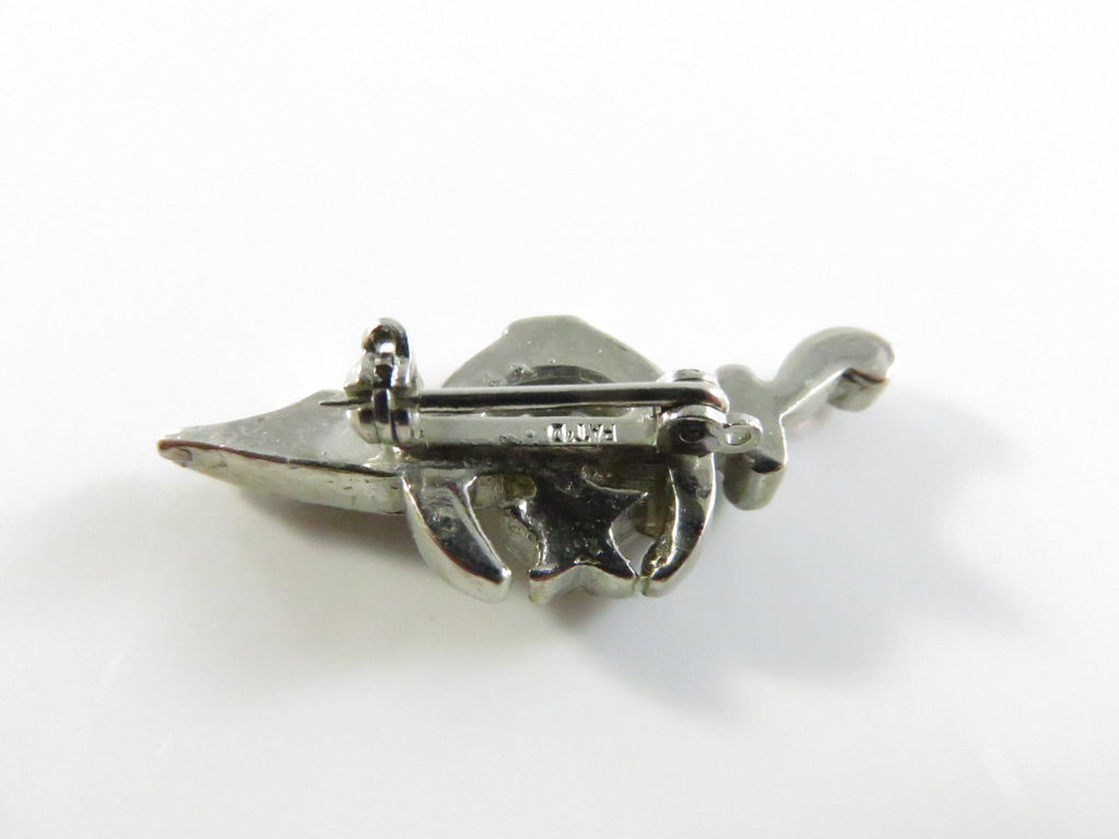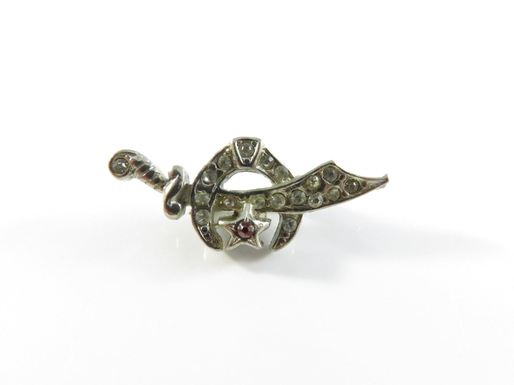 Shriners Sword Star Crescent Moon Lapel Brooch with Faux Stones - 1"