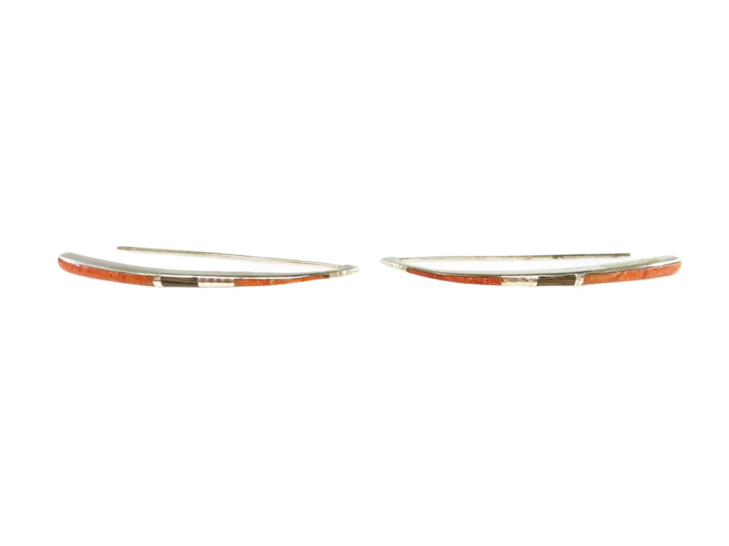 Silpada Sterling Sponge Coral & Wood Inlay Threader Wire Earrings