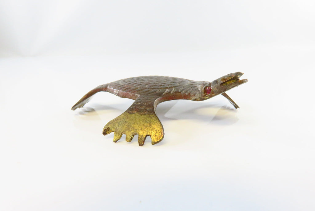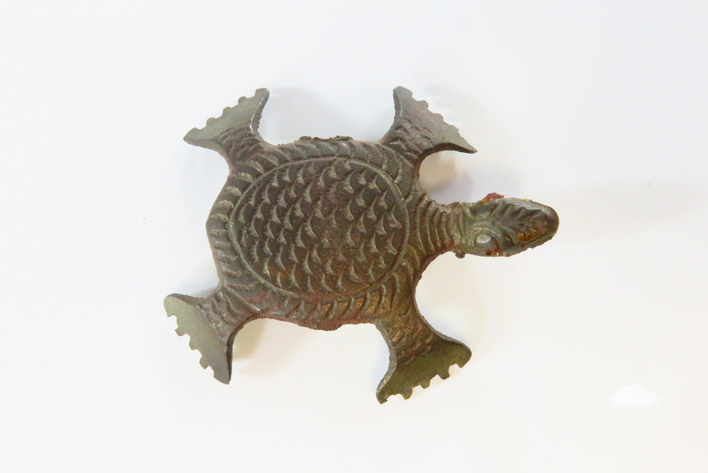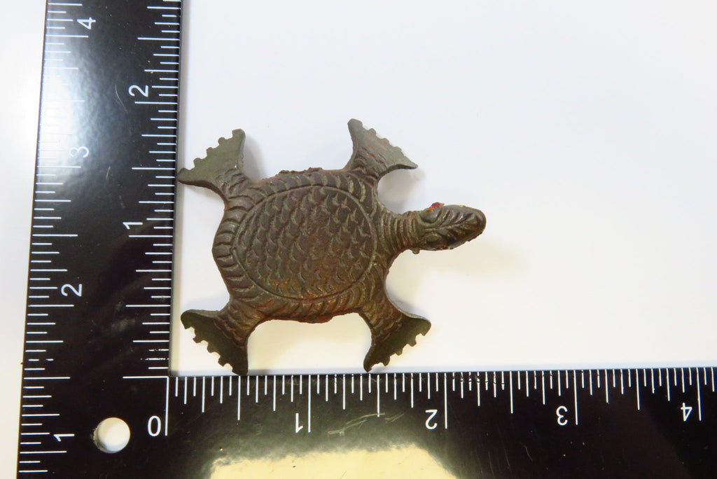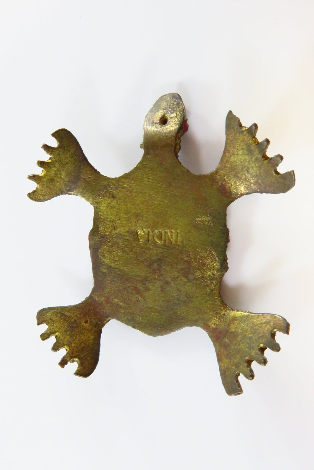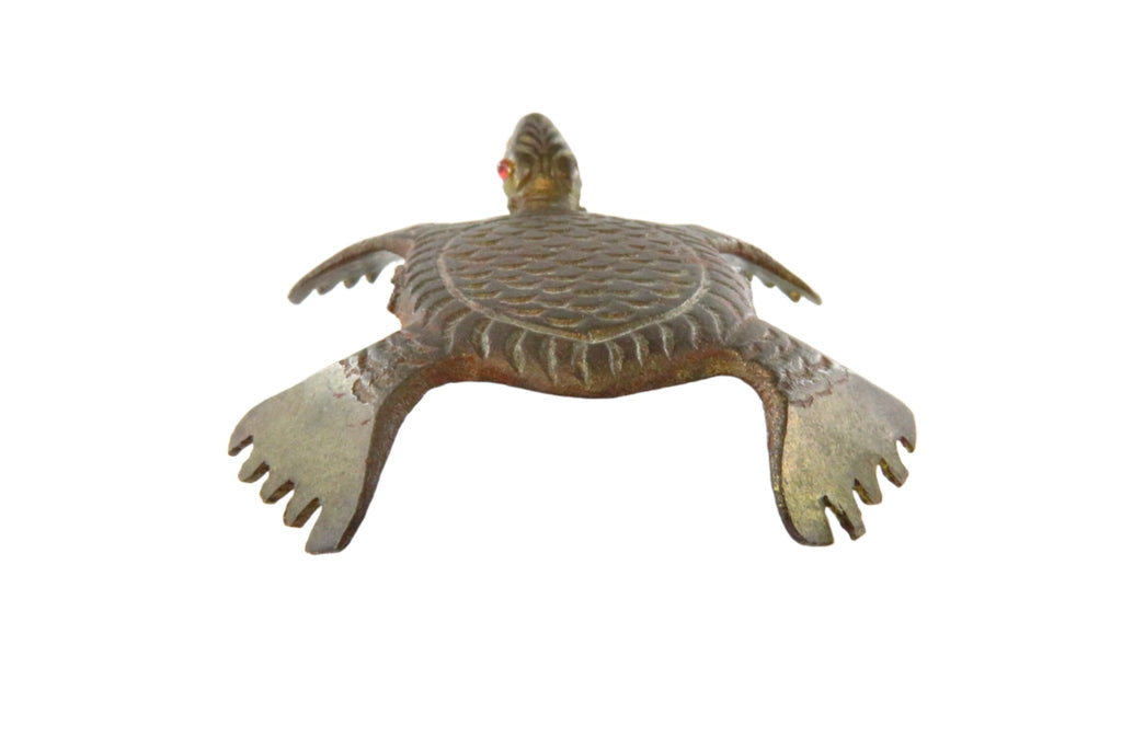 Small Brass Turtle with Little Red Eyes and Scratchy Paws / Vintage