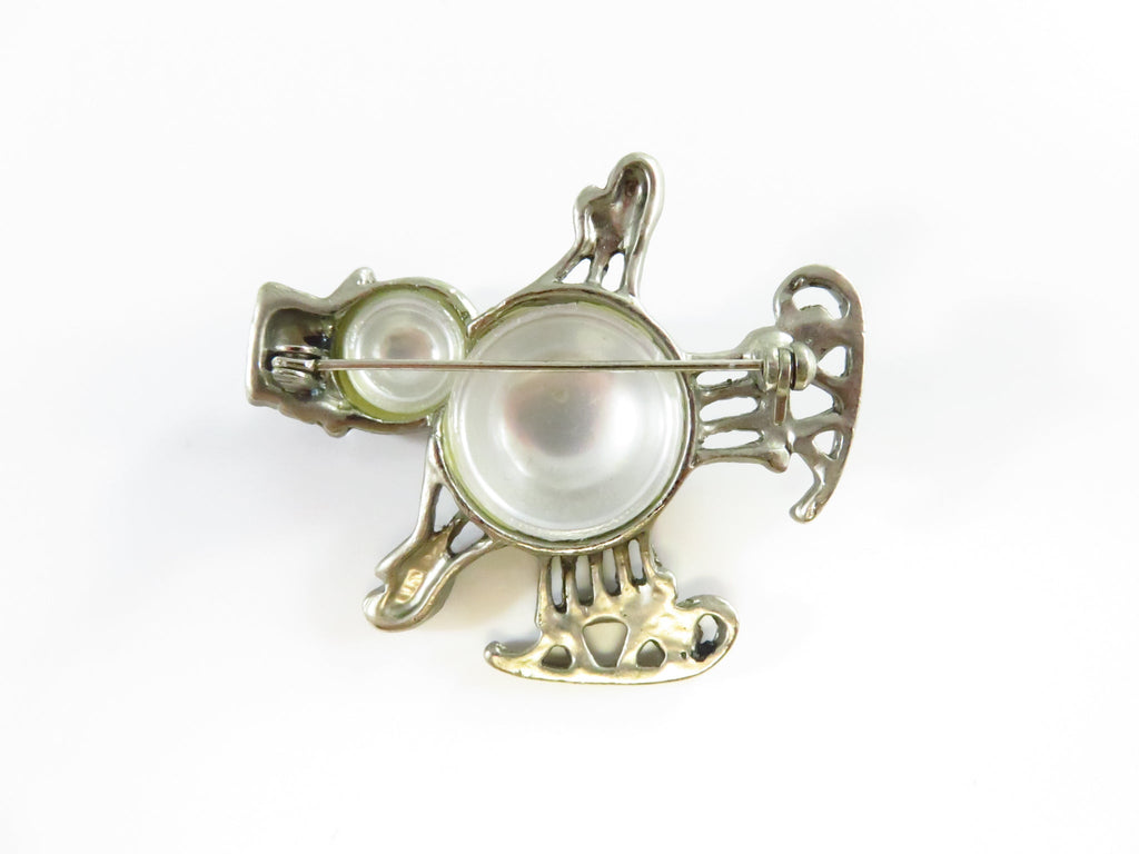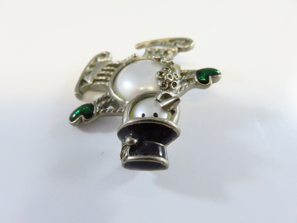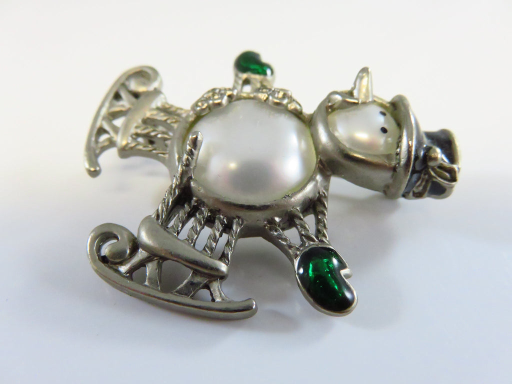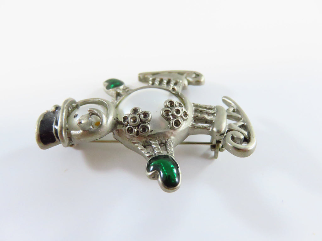 Ice Skating Snowman Brooch Jelly Belly Style Enameled Pewter Color Christmas Brooch