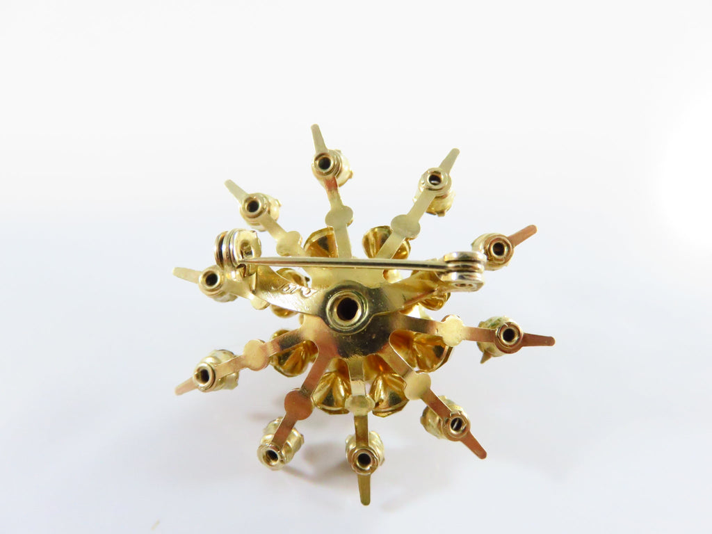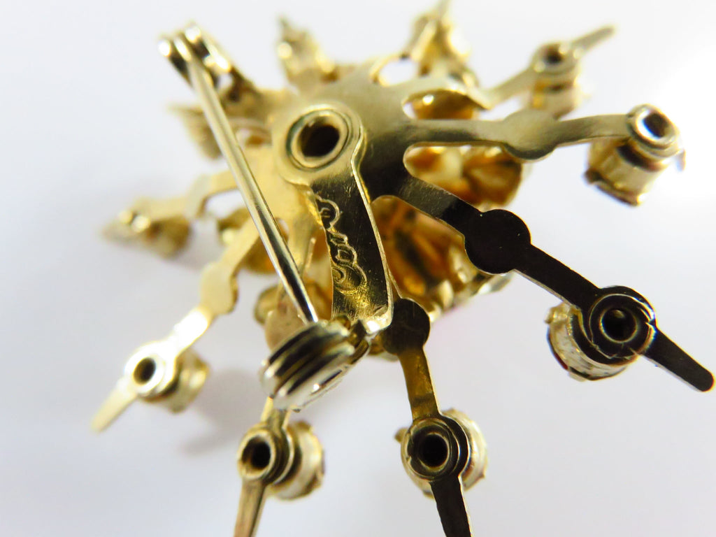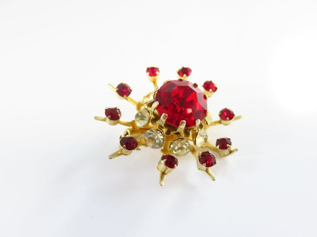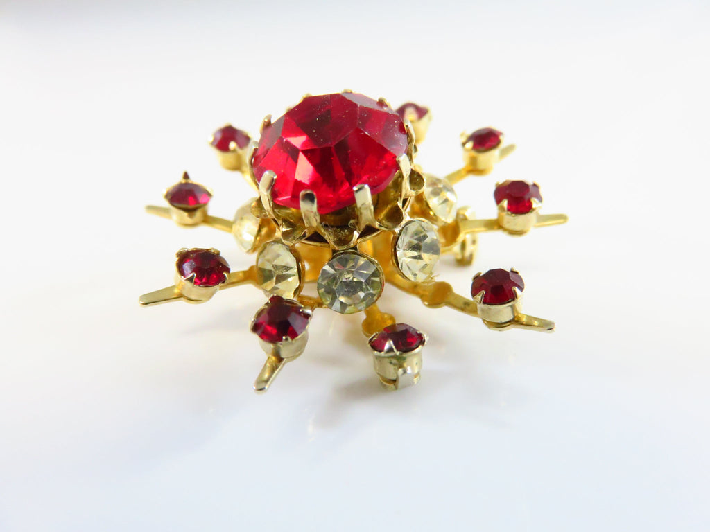 Starburst Rhinestone Brooch Red White Sparkle Gold Tone c1950's Coro Pin