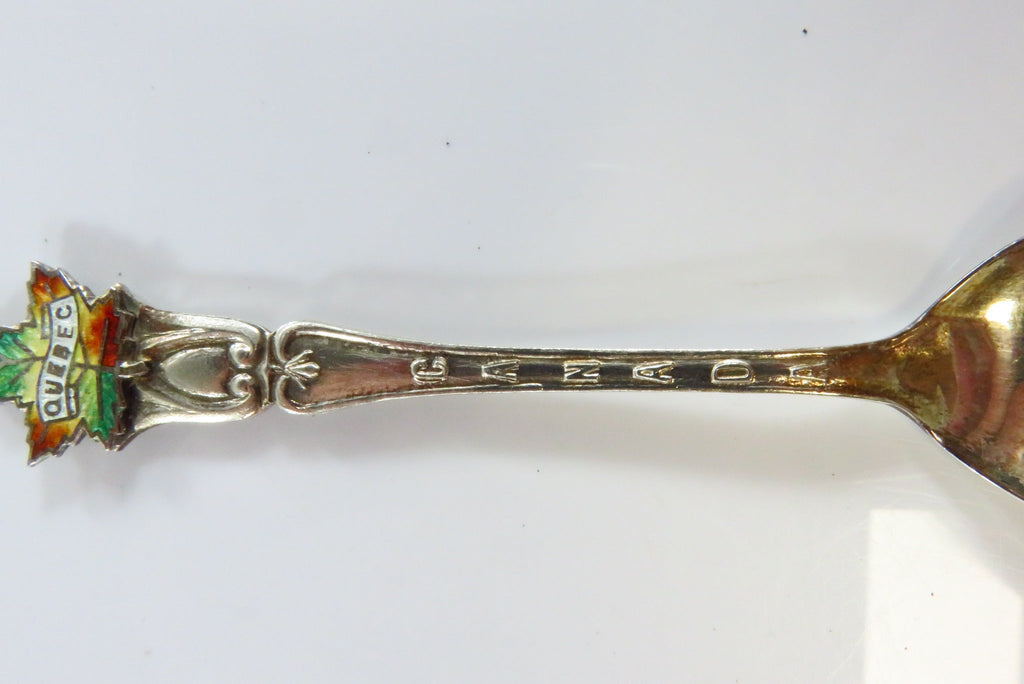 Sterling Enamel Maple Leaf Quebec Canada Souvenir Spoon 3 3/4"