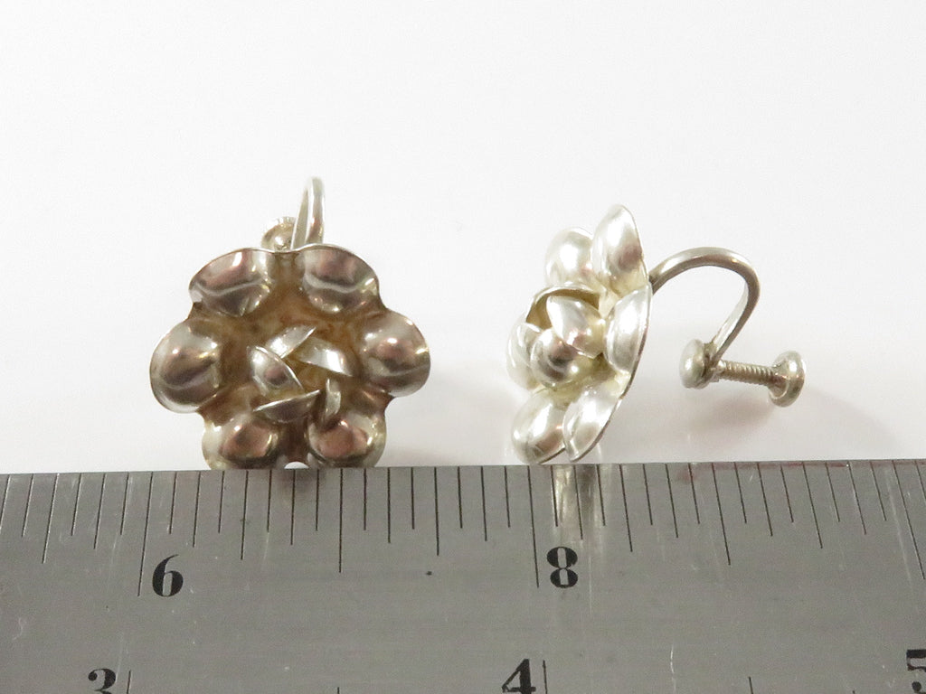 Repousse Metal Flower Shaped Screw Back Earrings Celebrate the Beauty of Nature