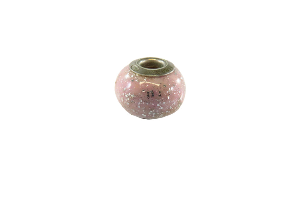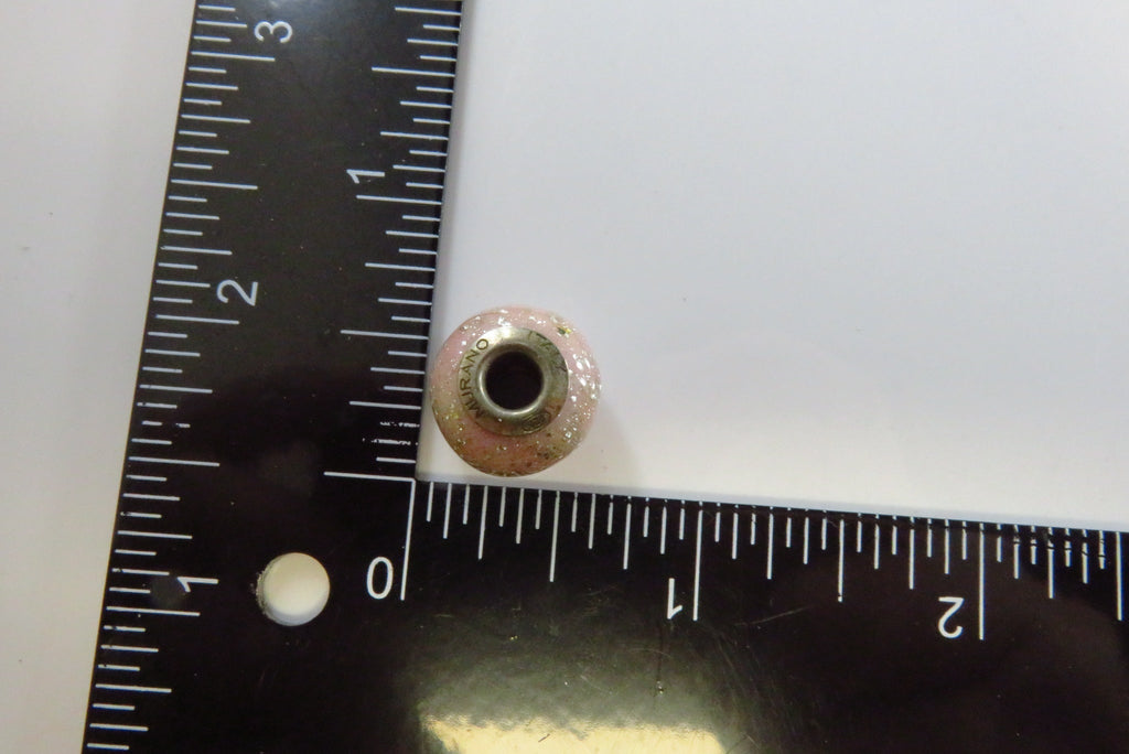 Sterling Silver Murano Glass Bead Charm Pink with Silver Glitter 14.63mm