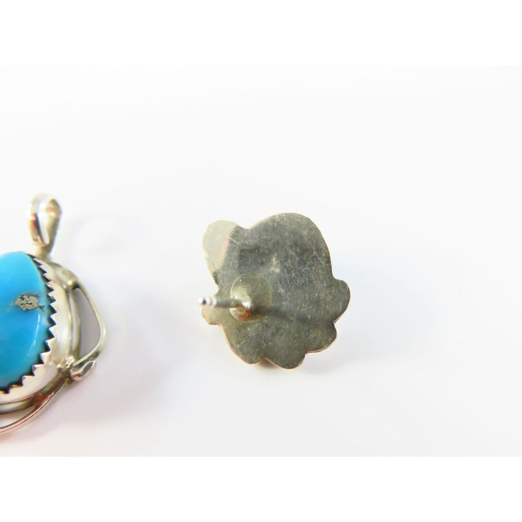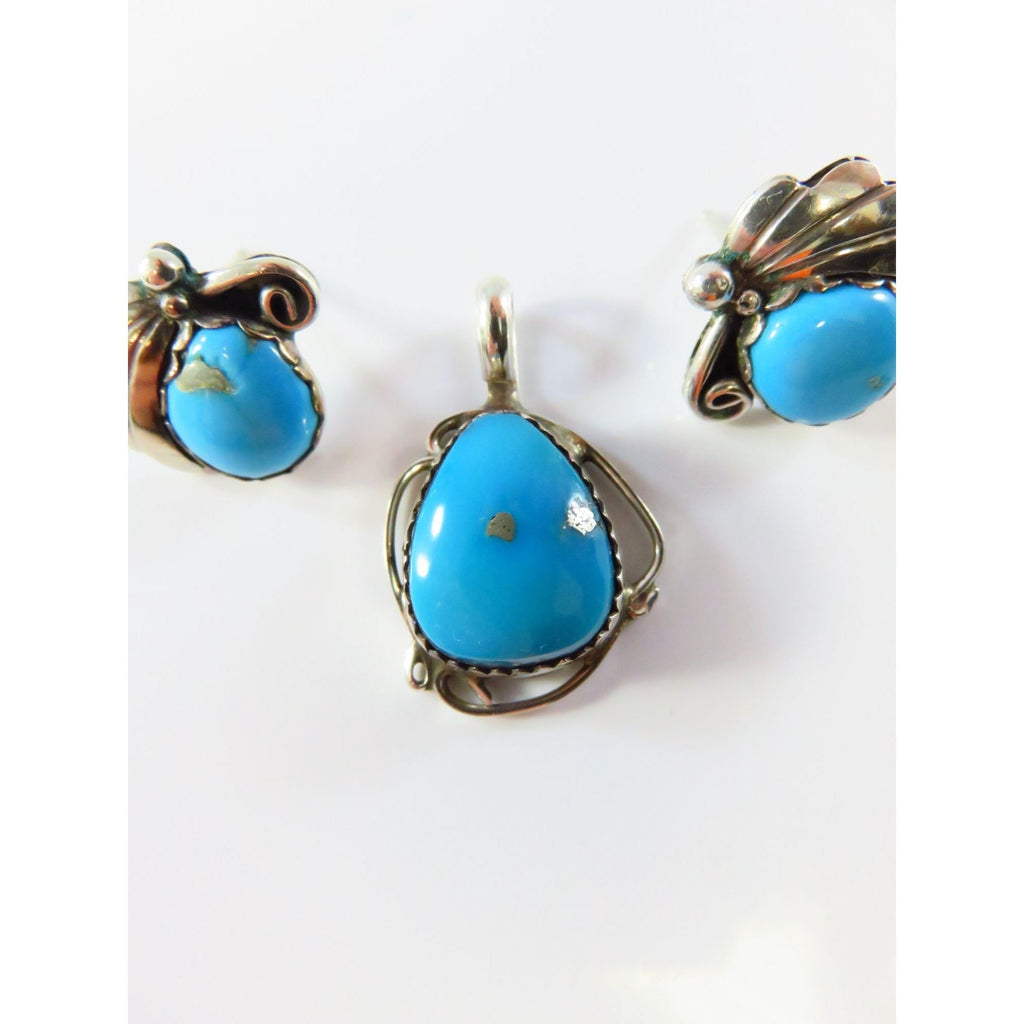 Sterling Silver Navajo Style Turquoise Pendant & Earrings Set Signed