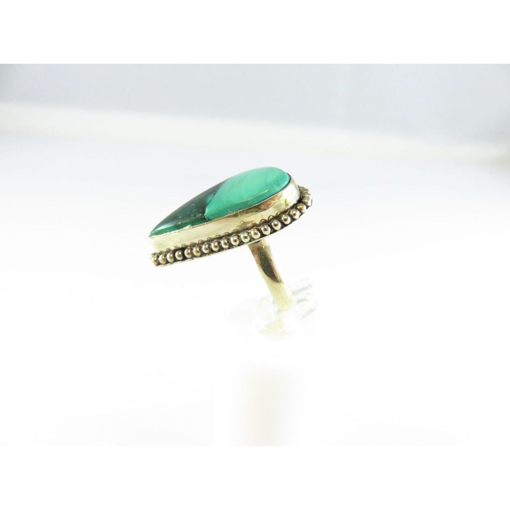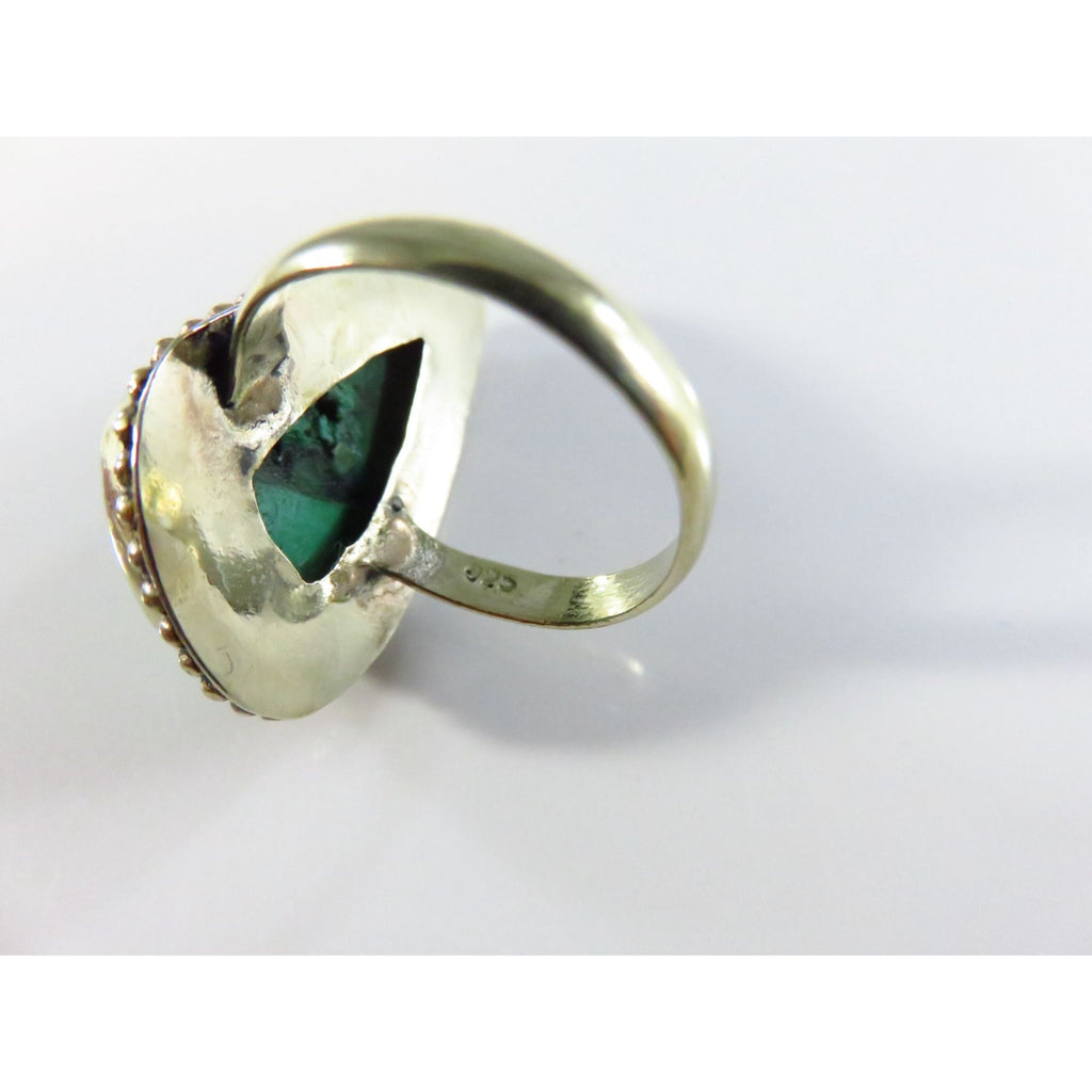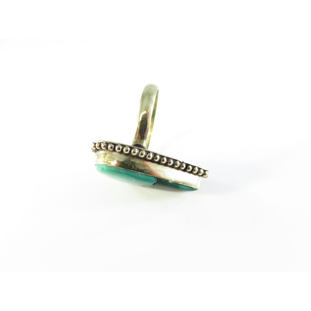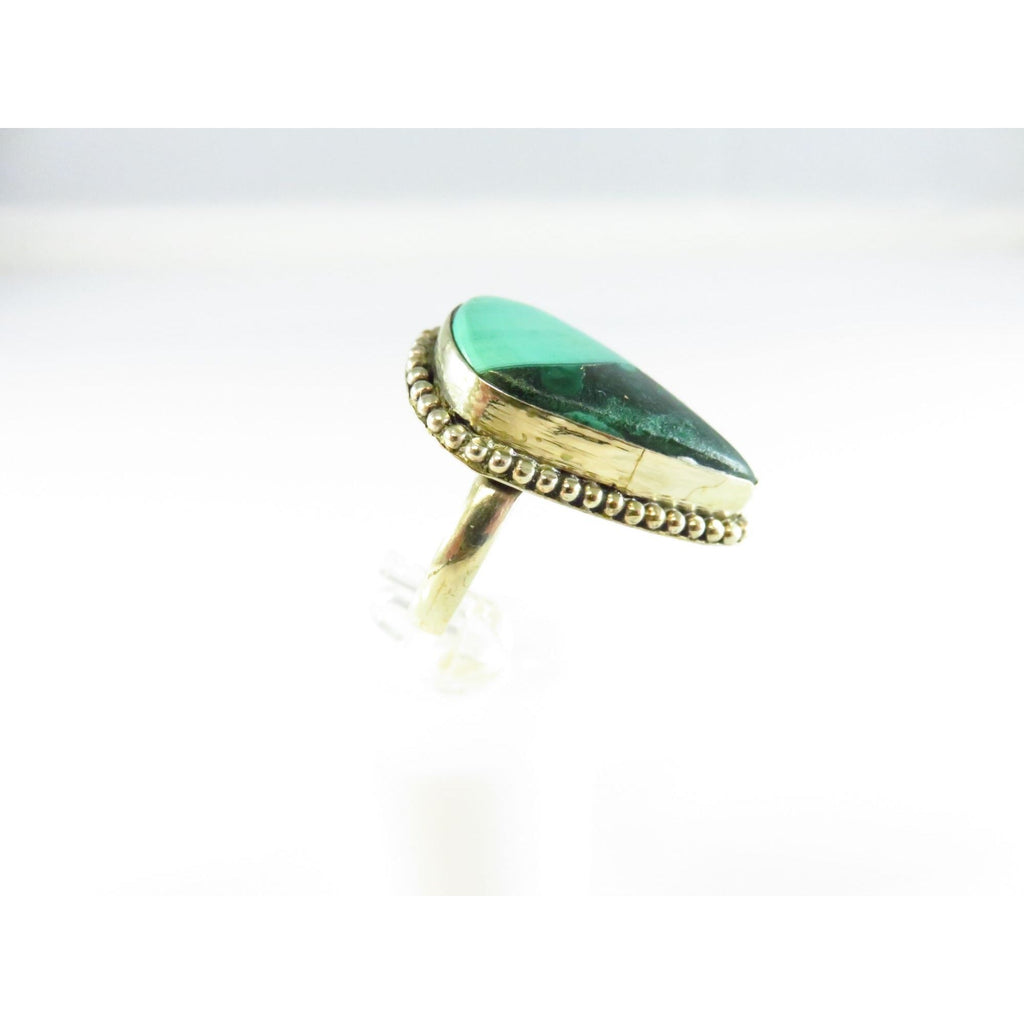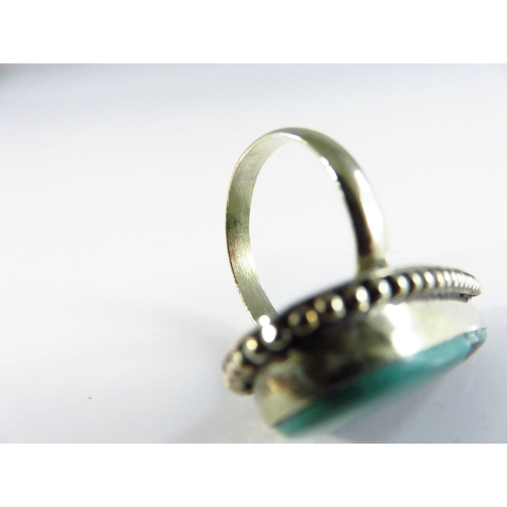 Sterling Silver Ring With Polished Malachite Stone & Beaded Ball Surround