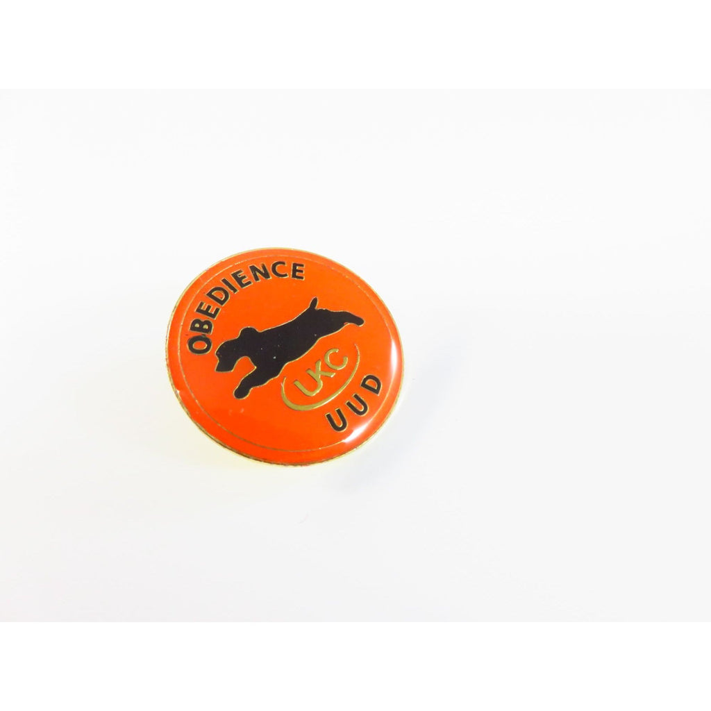 UKC Obedience UUD Dog Show Award Lapel Hat Pin 1" Round Orange & Gold Tone
