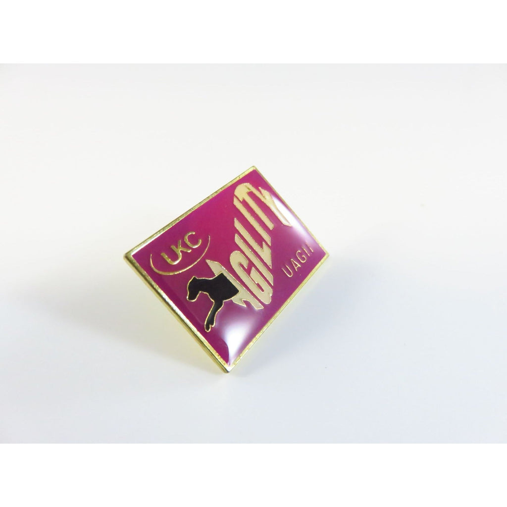UKC UAGII Agility Award Lapel Hat Pin Gold Tone 1" Rectangle Violet & Black Dog Show Pin