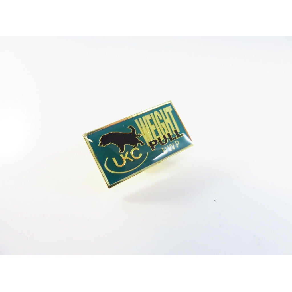 UKC Weight Pull UWP Award Pin Gold Tone Rectangle Lapel Hat Pin 1" Teal Green Black