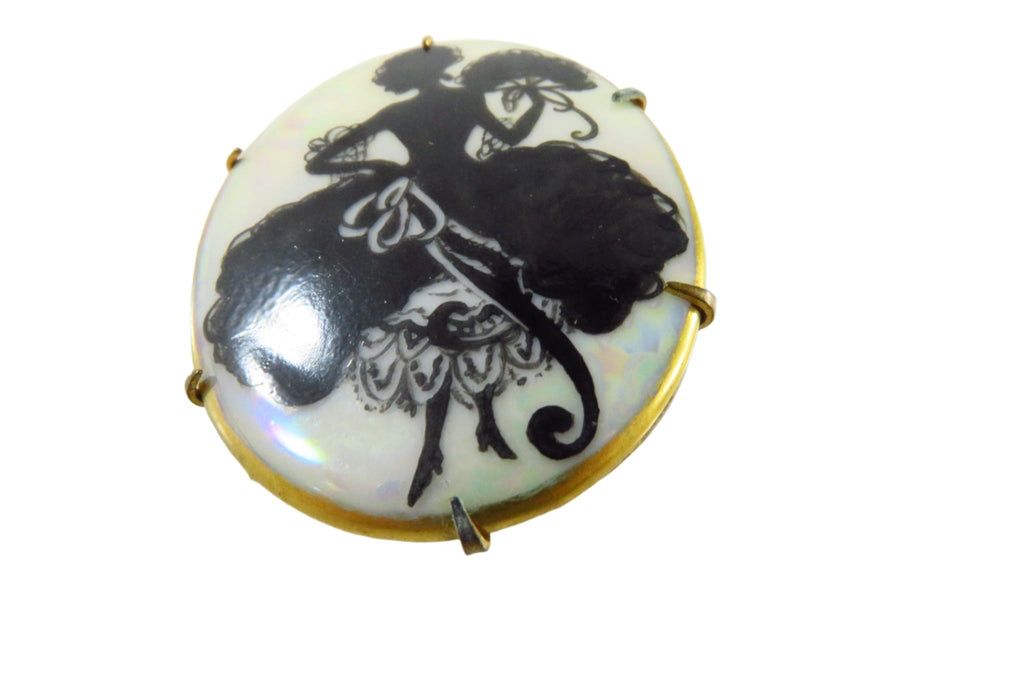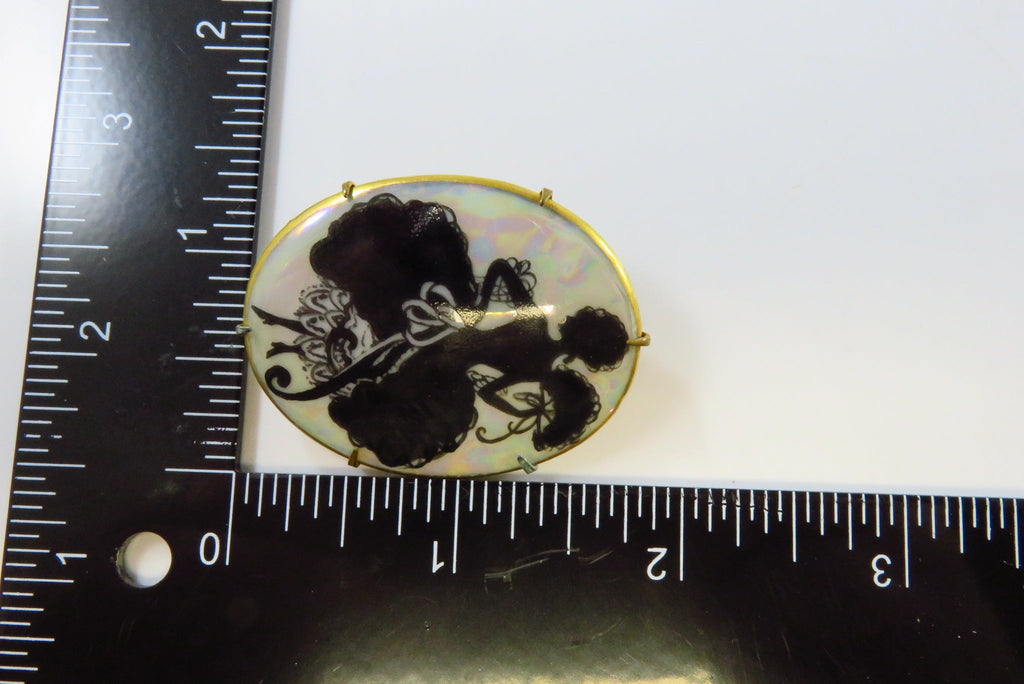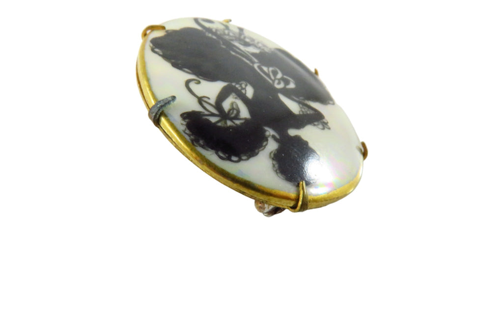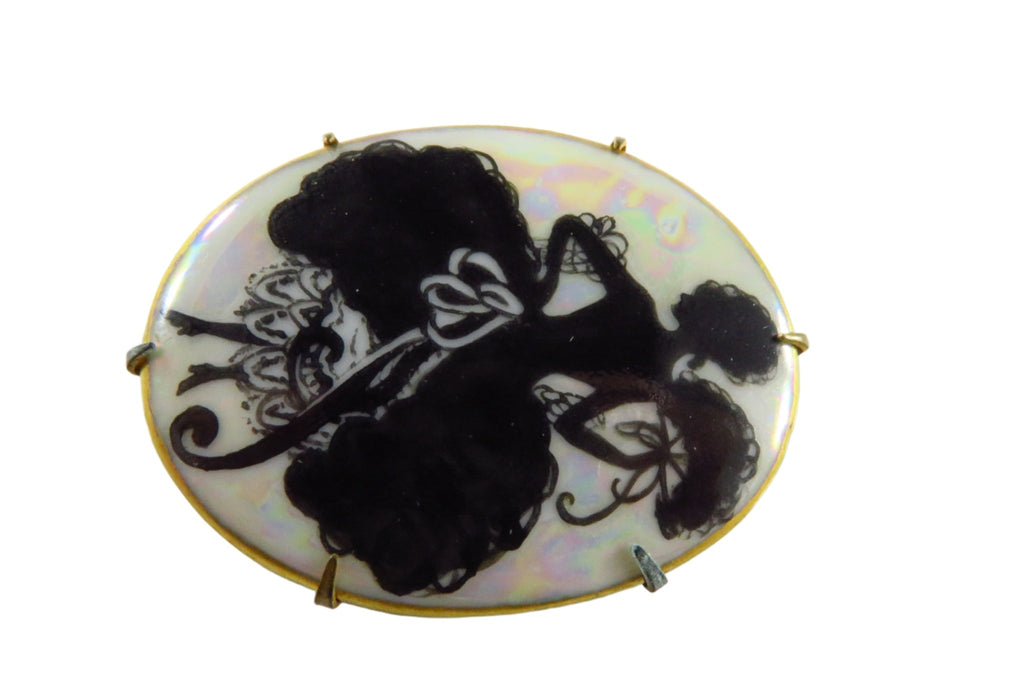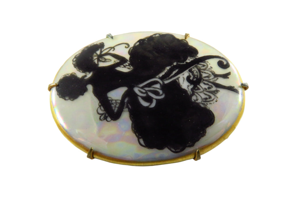 Victorian Dancing Woman Silhouette Cameo Brooch Hand Painted Luster Porcelain