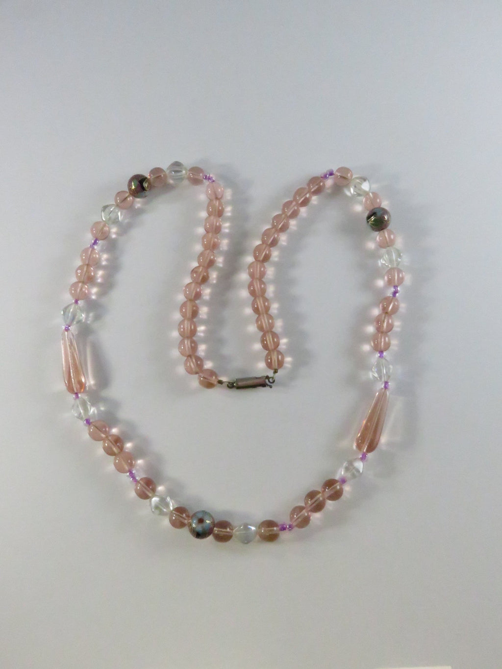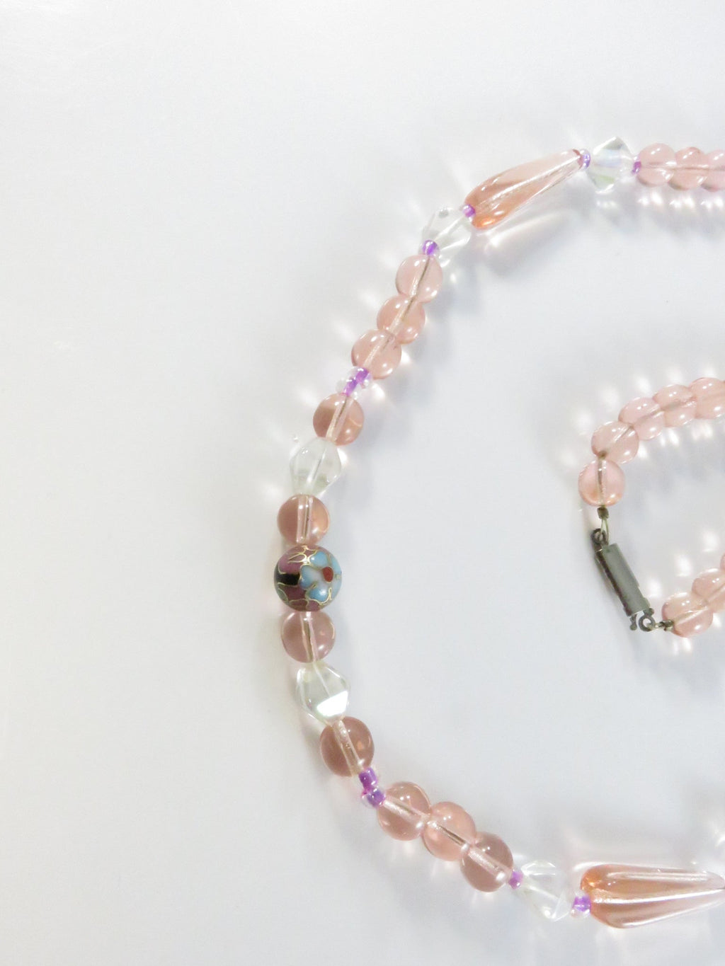 Vintage 1970s Asian Cloisonné & Pink Glass Bead Necklace, 24 Inch Strand