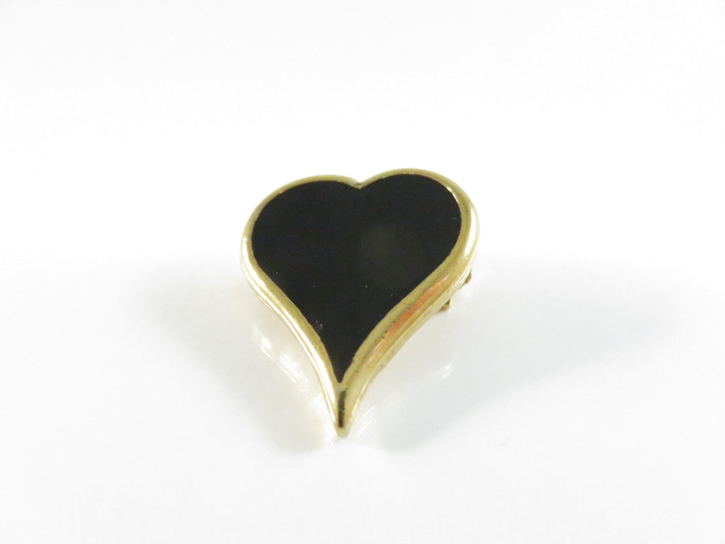 Vintage Avon Black Enamel Heart Brooch Pinback and Lapel Pin