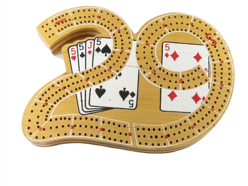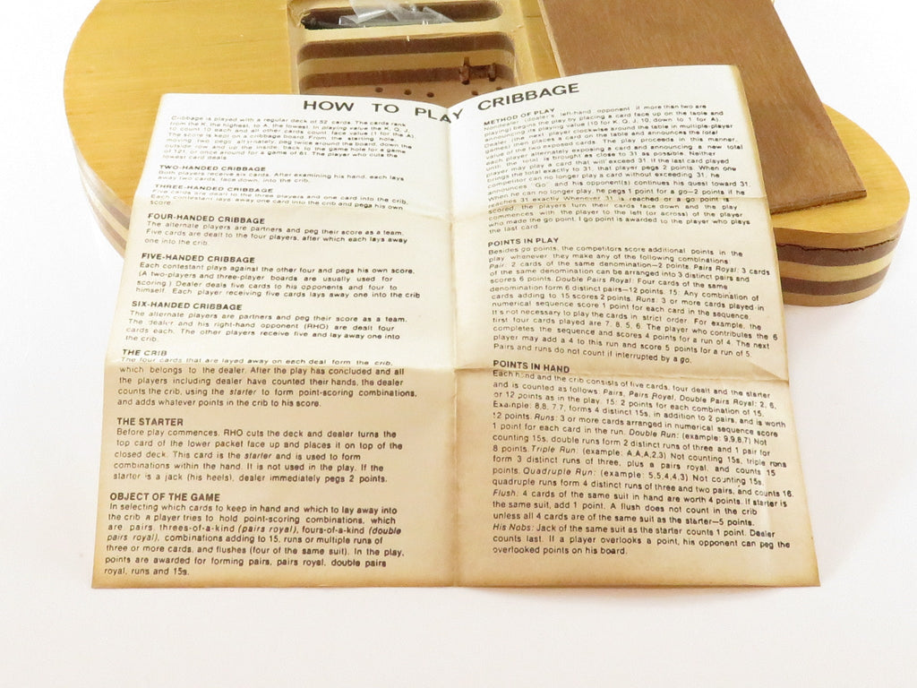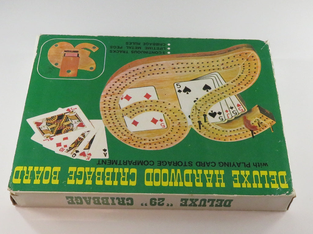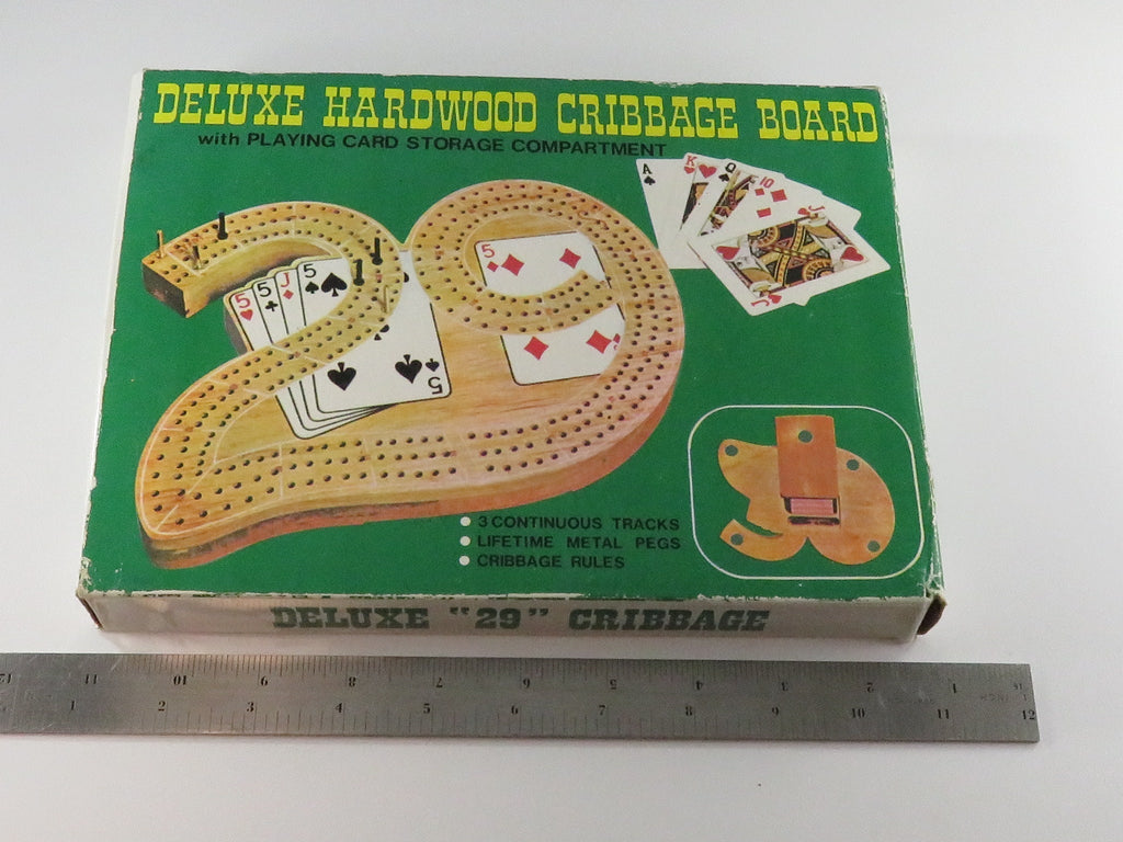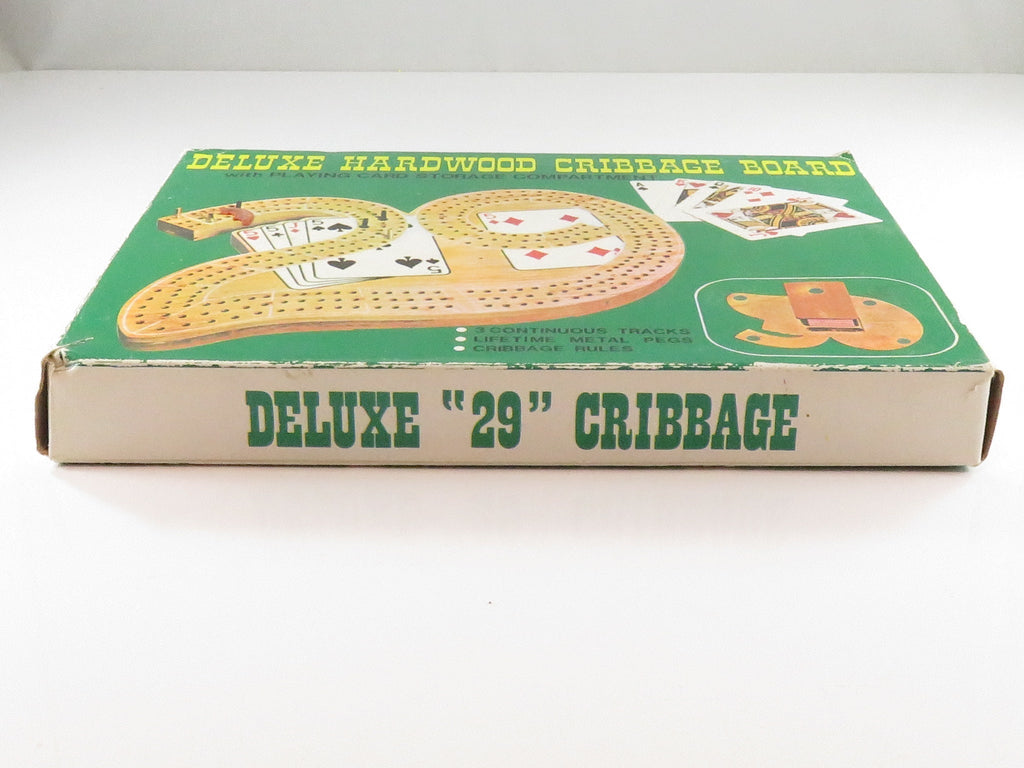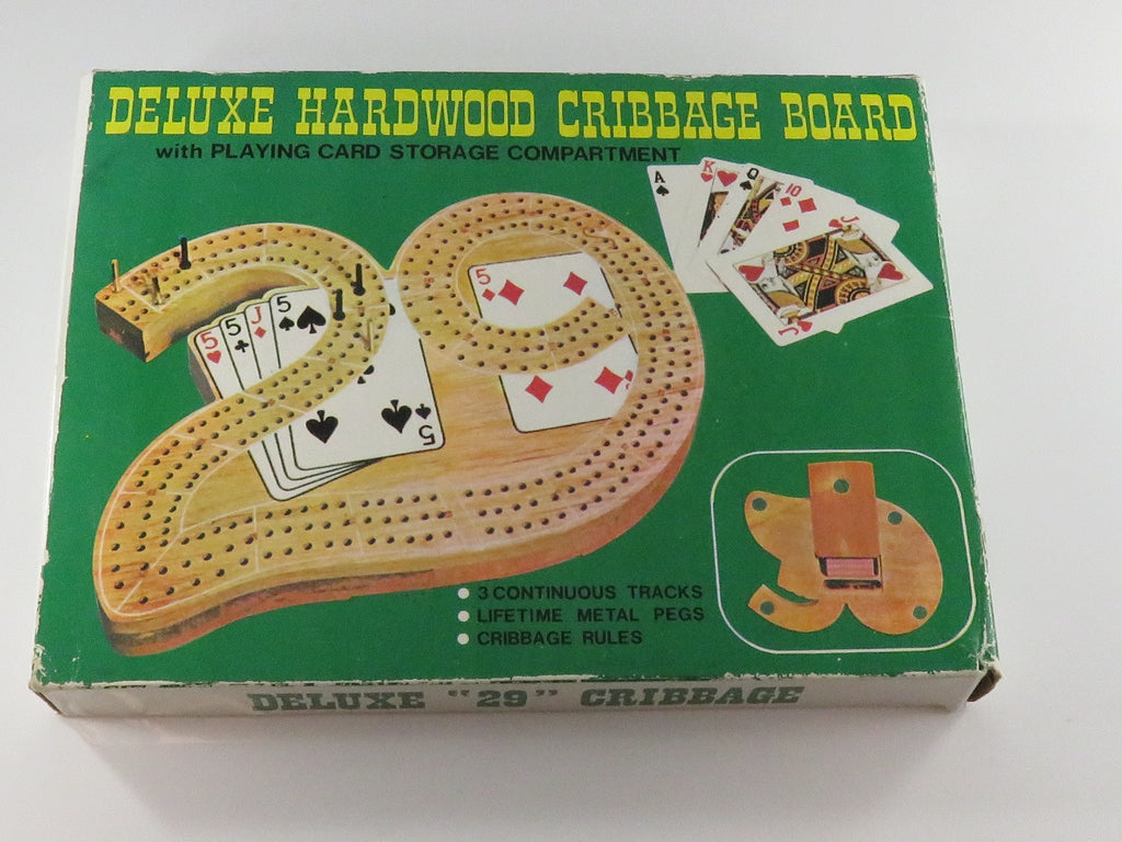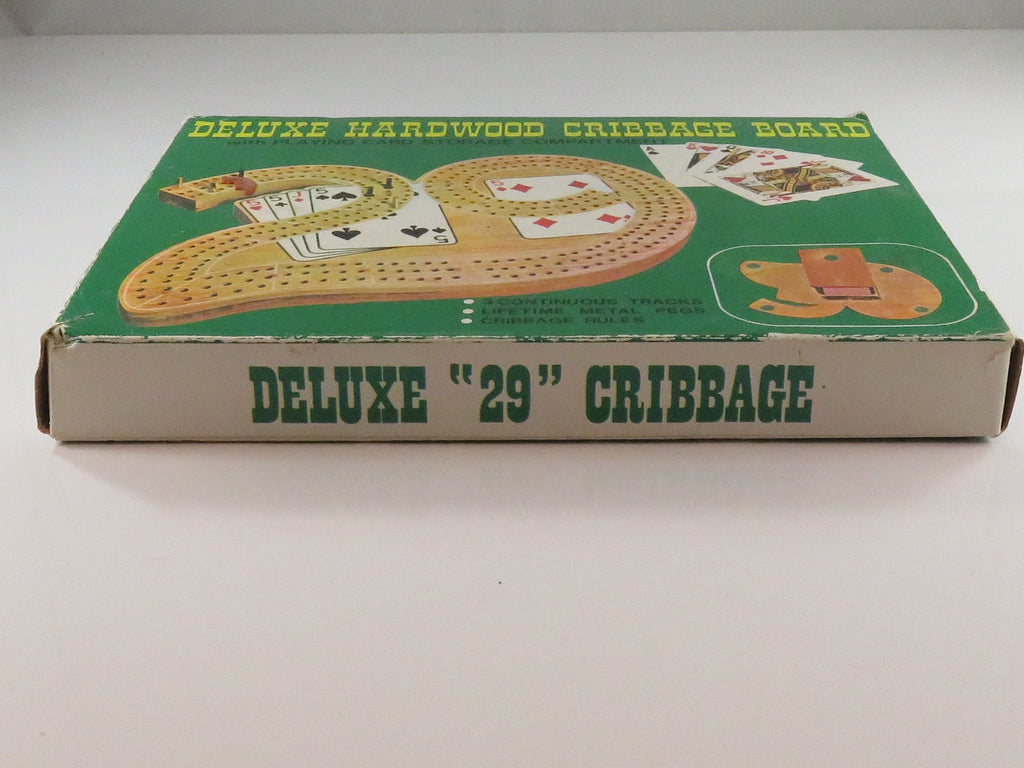 Vintage c1970 Deluxe Hardwood Cribbage Board Game 3 Person in Box