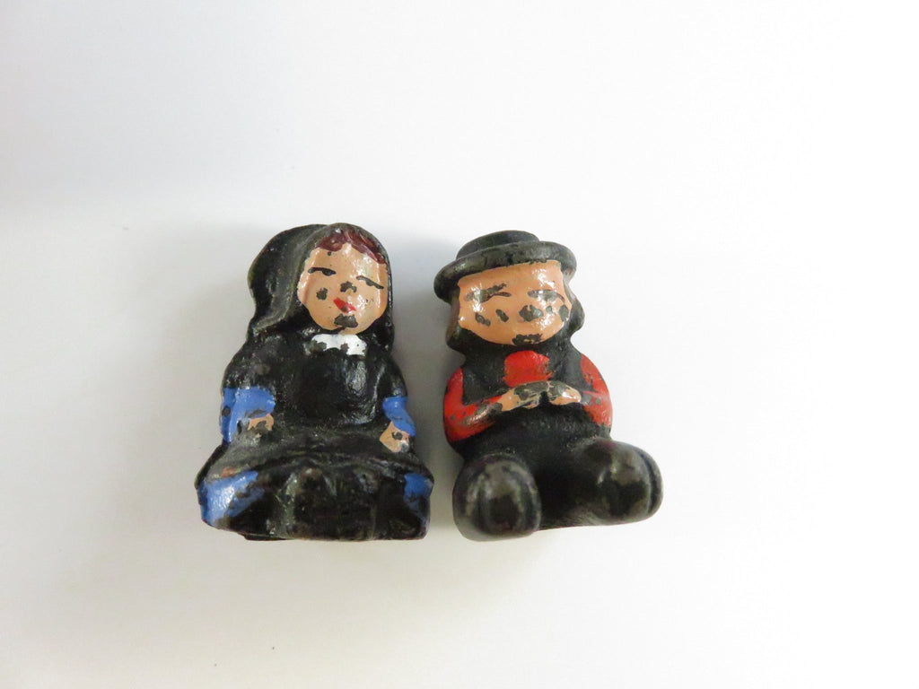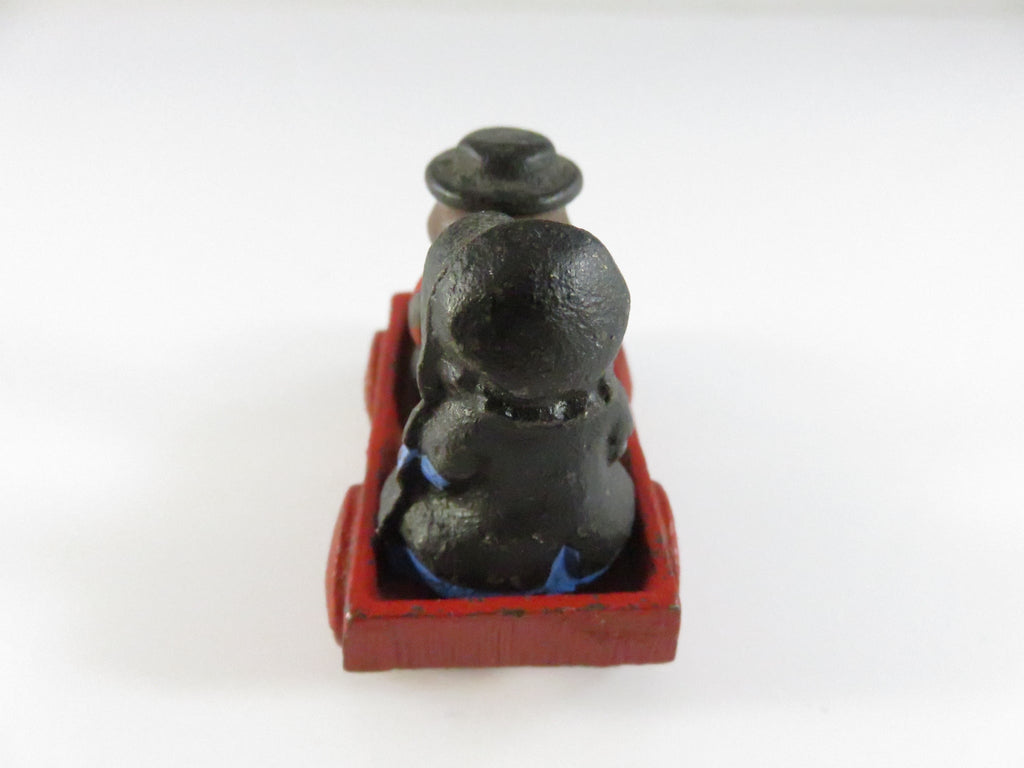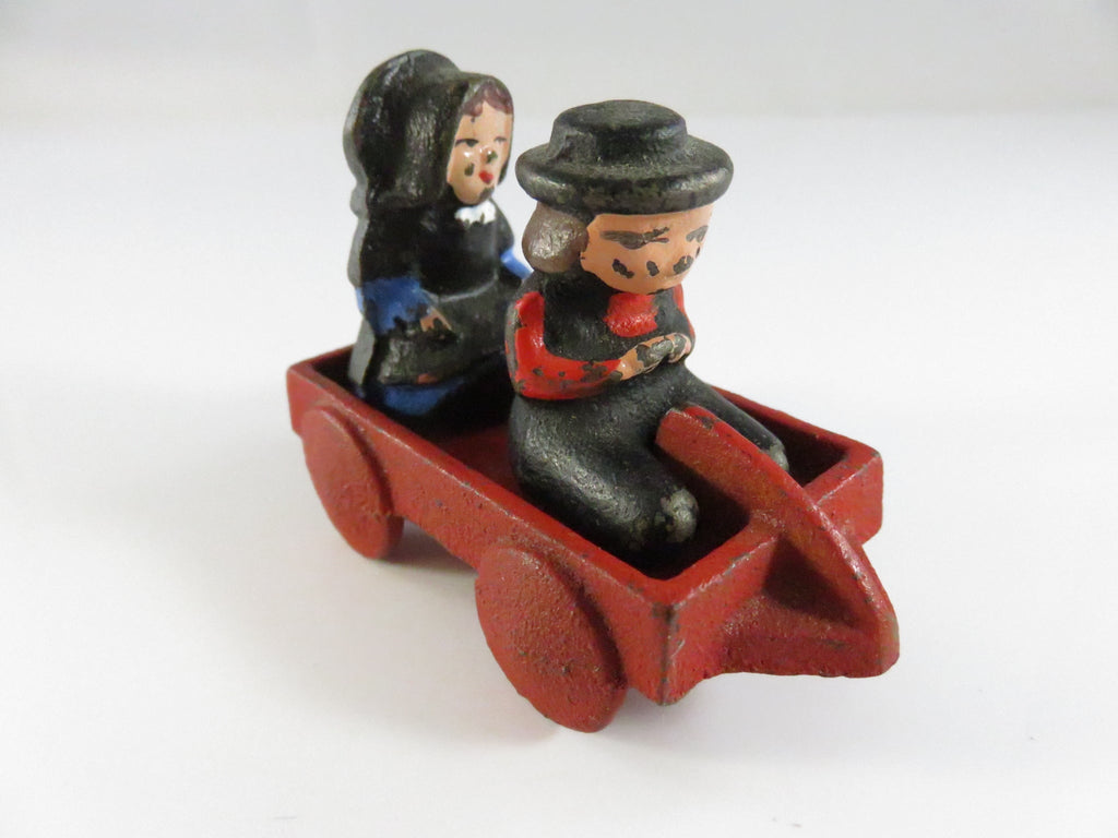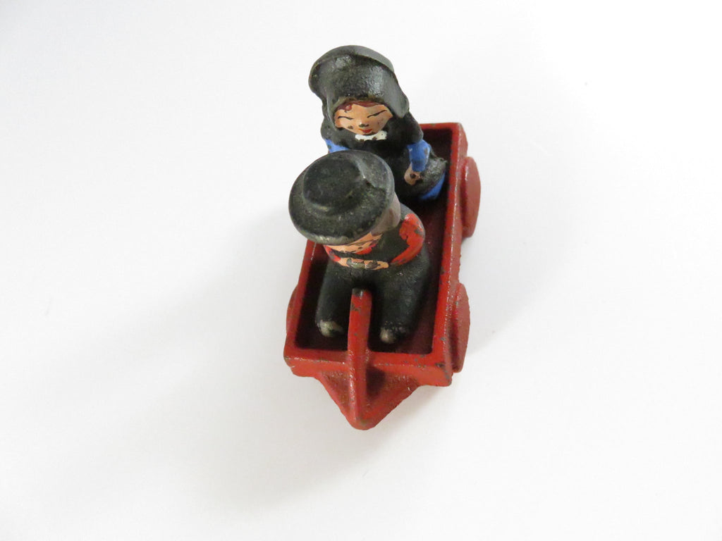 Vintage Cast Iron Amish Children in Red Wagon – Miniature Folk Art Figural Set