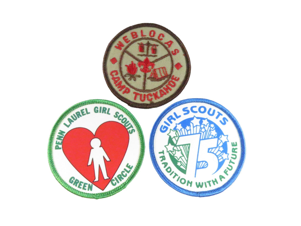 Vintage Girl Scout Patches Set – Camp Tuckahoe, Penn Laurel Green Circle, 75 Years Tradition