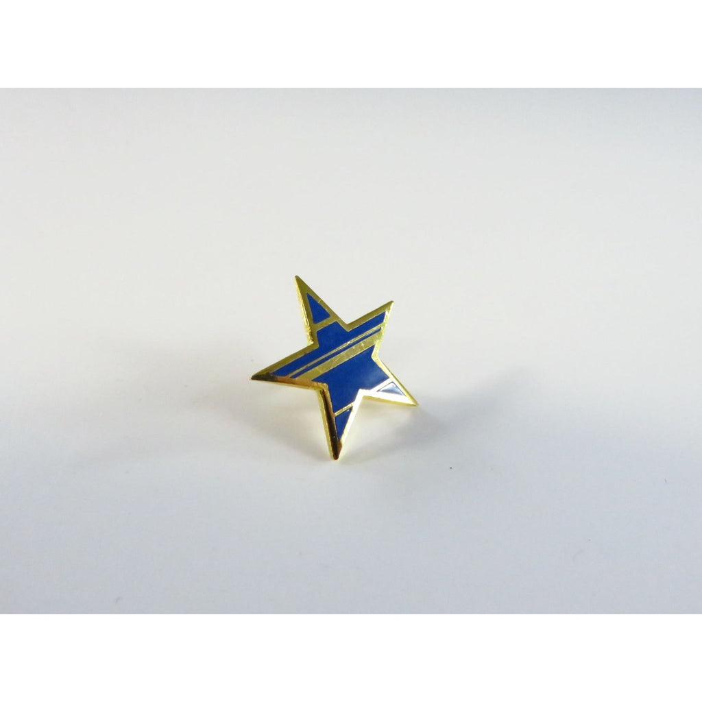 Vintage Gold Tone & Blue Enamel Star Shaped Pinback Hat/Lapel Pin 3/4" Across