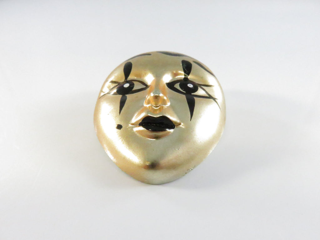 Vintage Gold Tone Pierrot Mask Brooch Pin Made in Taiwan R.O.C. – 2" Tall