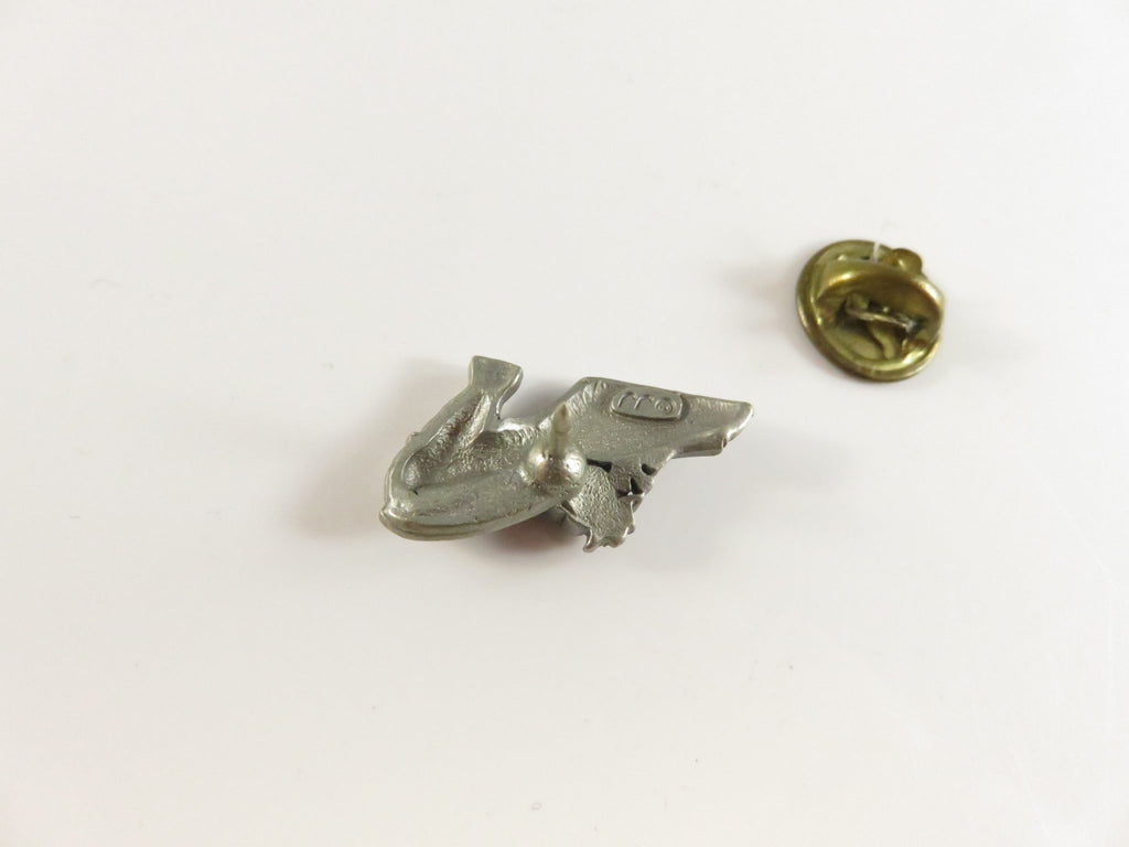 Vintage JJ Jonette Pewter High Heel Pin | Flower Accent | Shoe Pinback