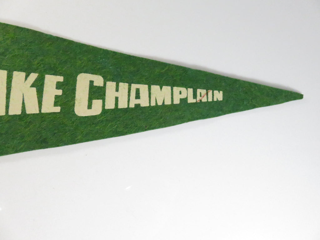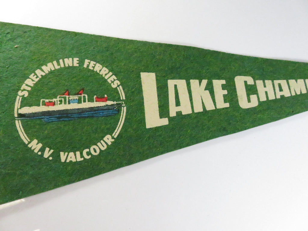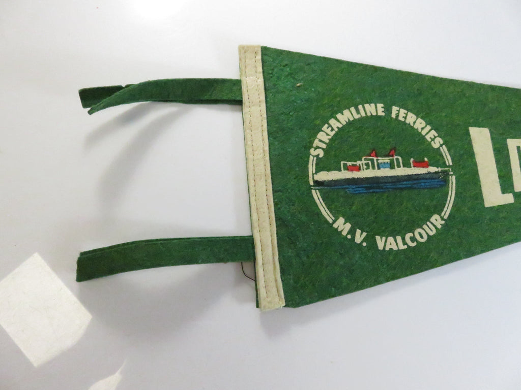 Vintage Lake Champlain Felt Souvenir Pennant – Streamline Ferries M.V. Valcour – White/Green – approx. 15"