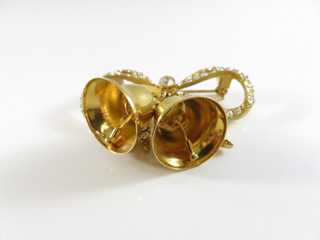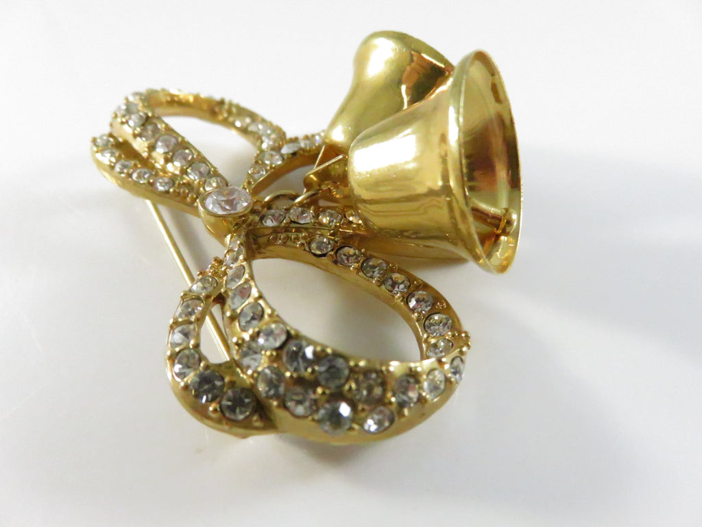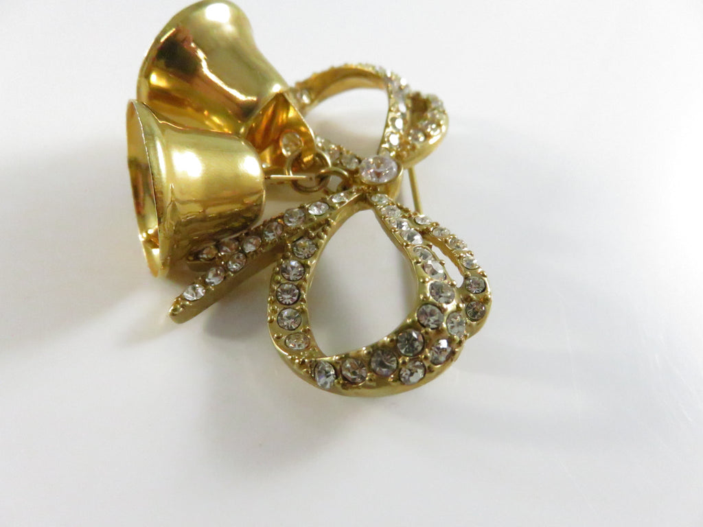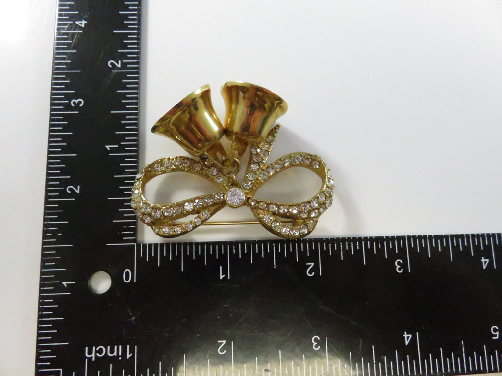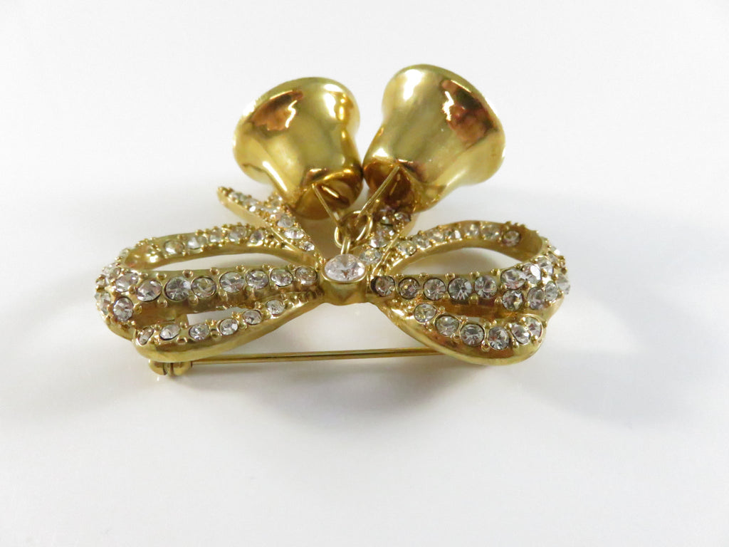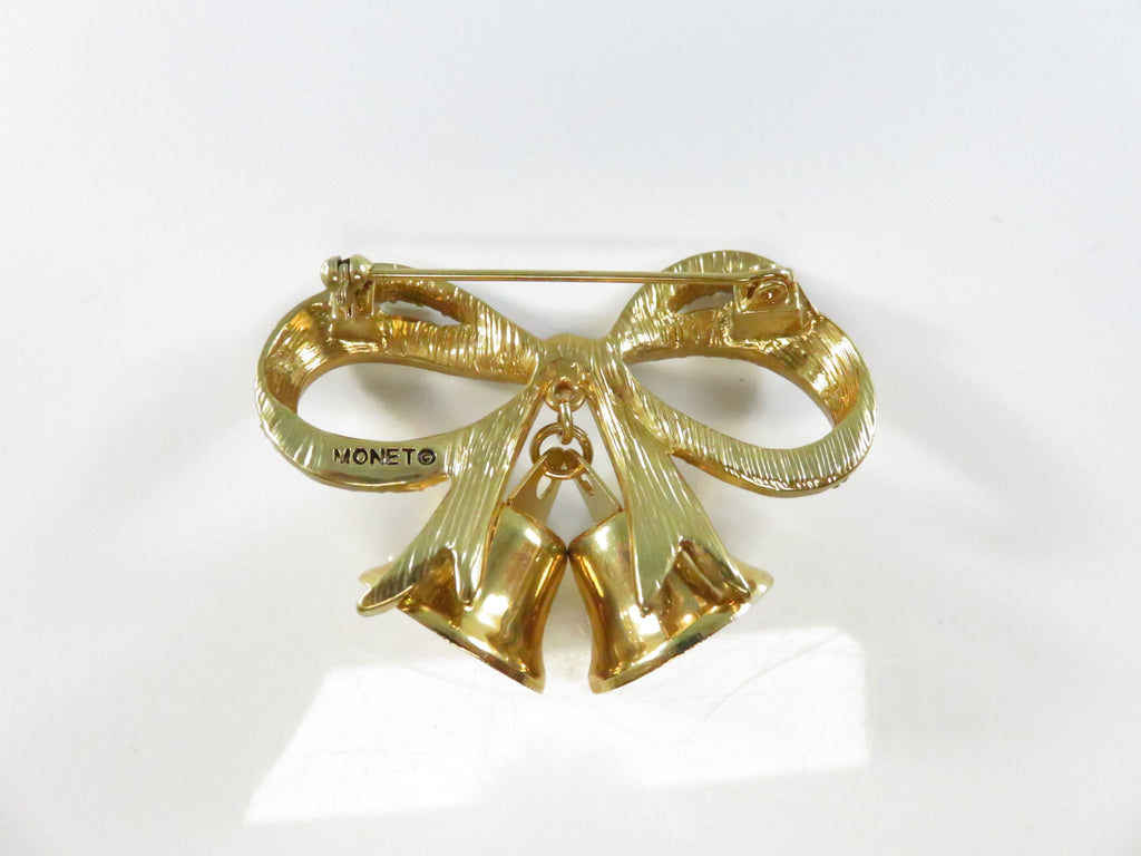 Vintage Monet Bow Brooch with Bells Rhinestone Pinback and Lapel Pin