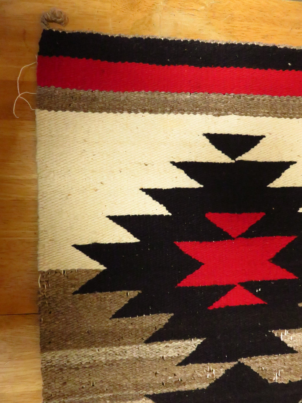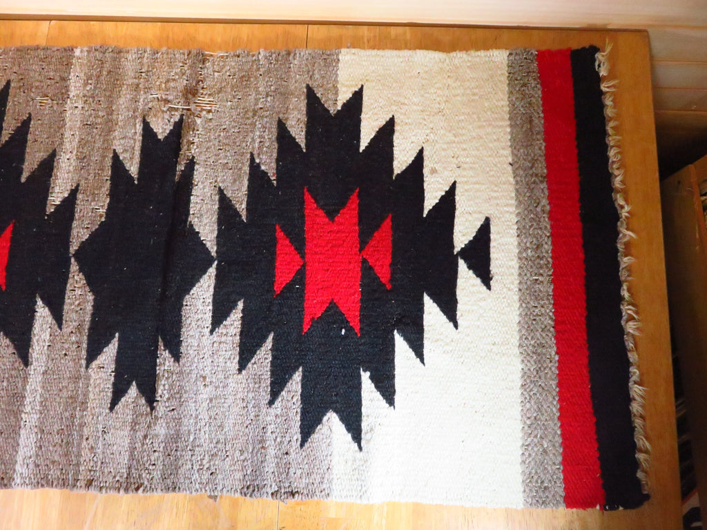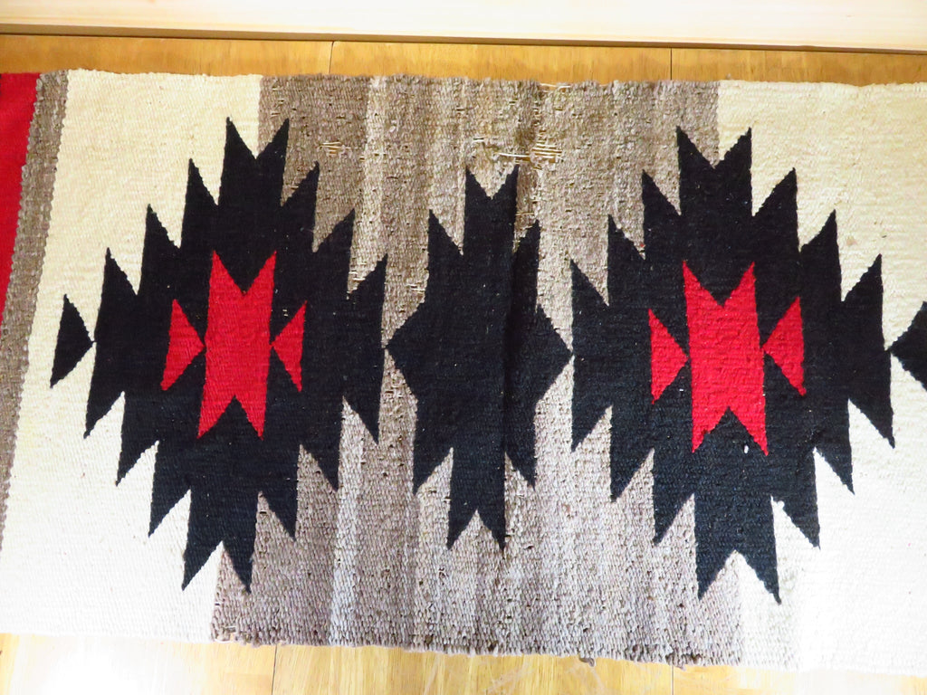 Vintage Native American Navajo Area Rug Double Medallion Pattern With Losses