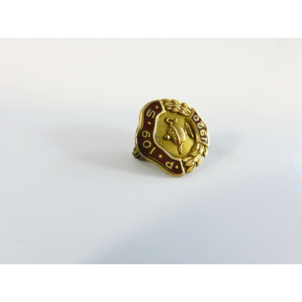 Vintage P.S. 109 School Pin 1920 Gold Tone Metal Red Enamel 1/2" Rare Collectible With Damage
