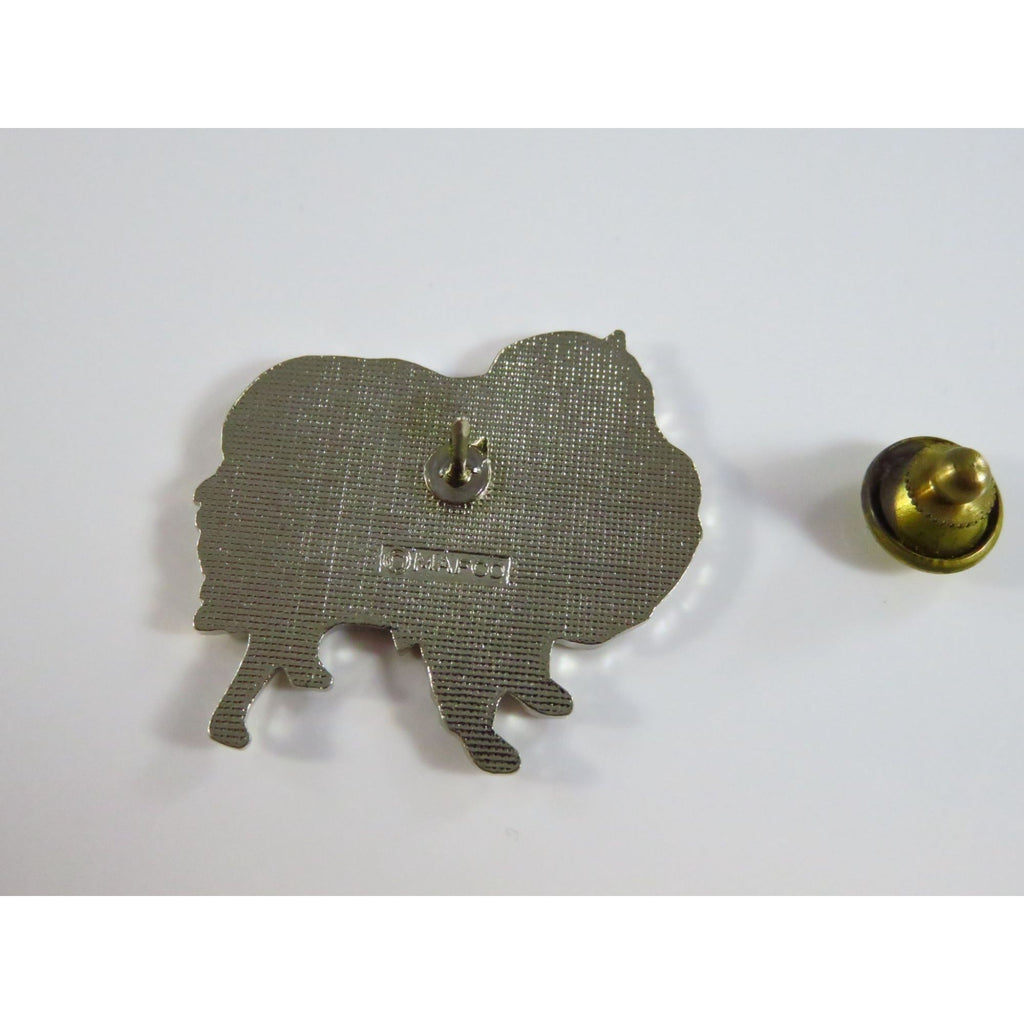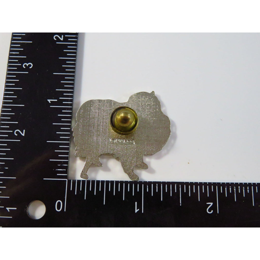 Vintage Pomeranian Dog Enamel Lapel Pin 1 3/8" Silver Tone Brown & Off White Base Metal