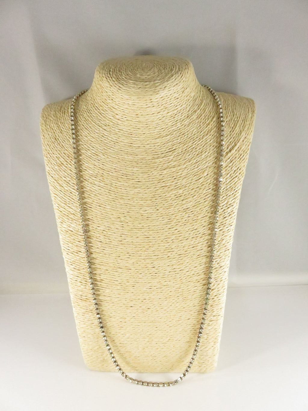 Vintage Rhinestone Necklace, 29.5", Tarnished Metal, As-Found