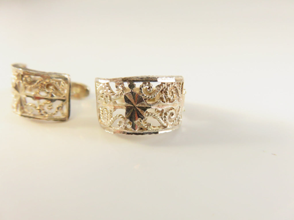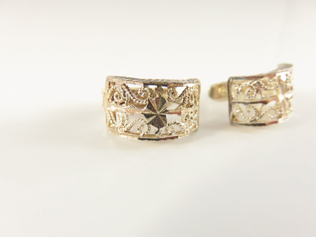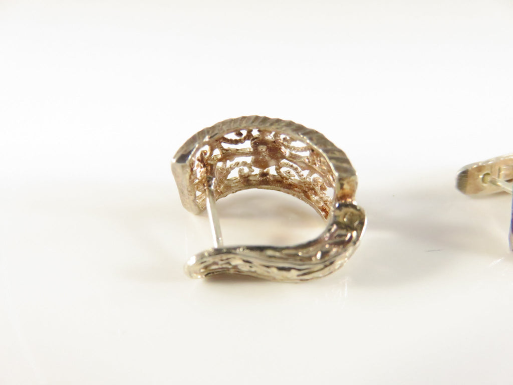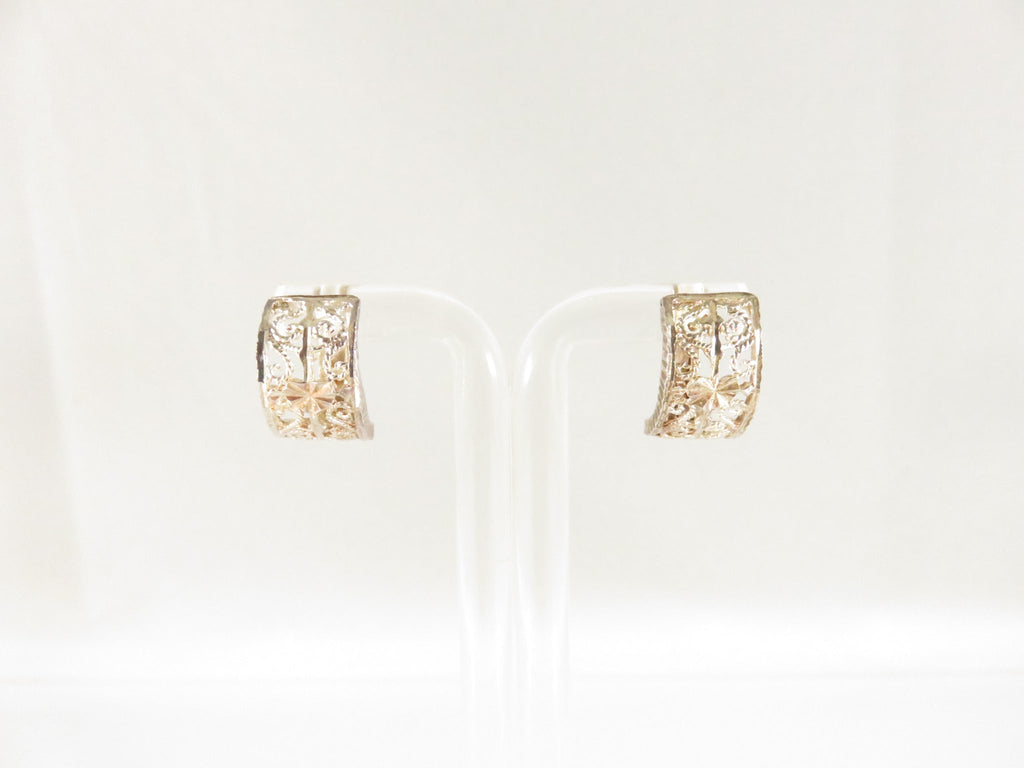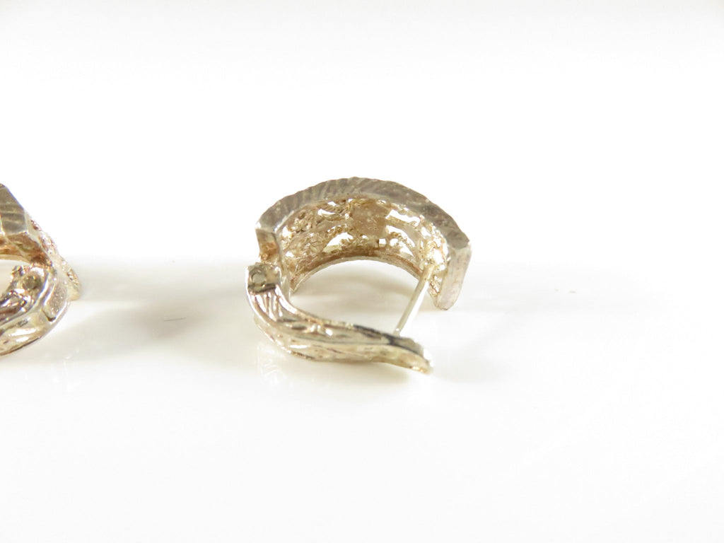 Vintage Sterling Silver Etched Half Hoop Earrings | Lever Back | 925