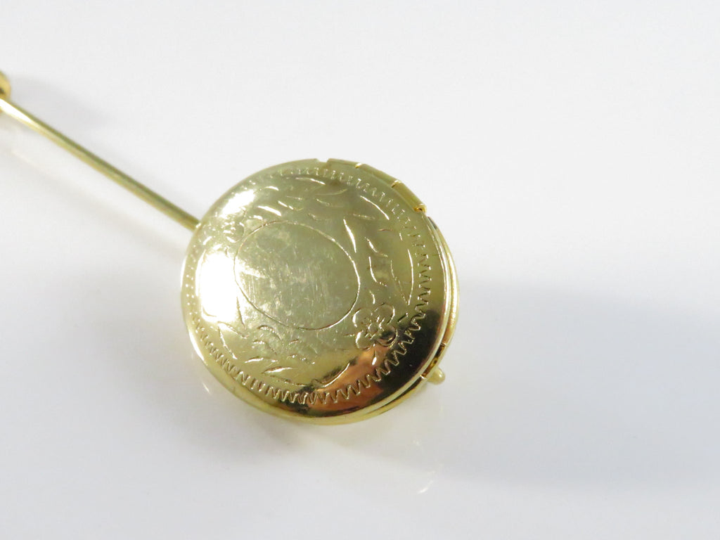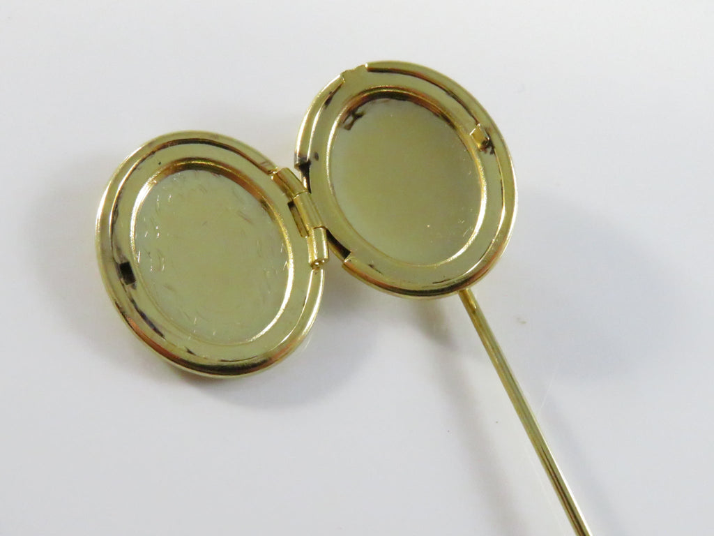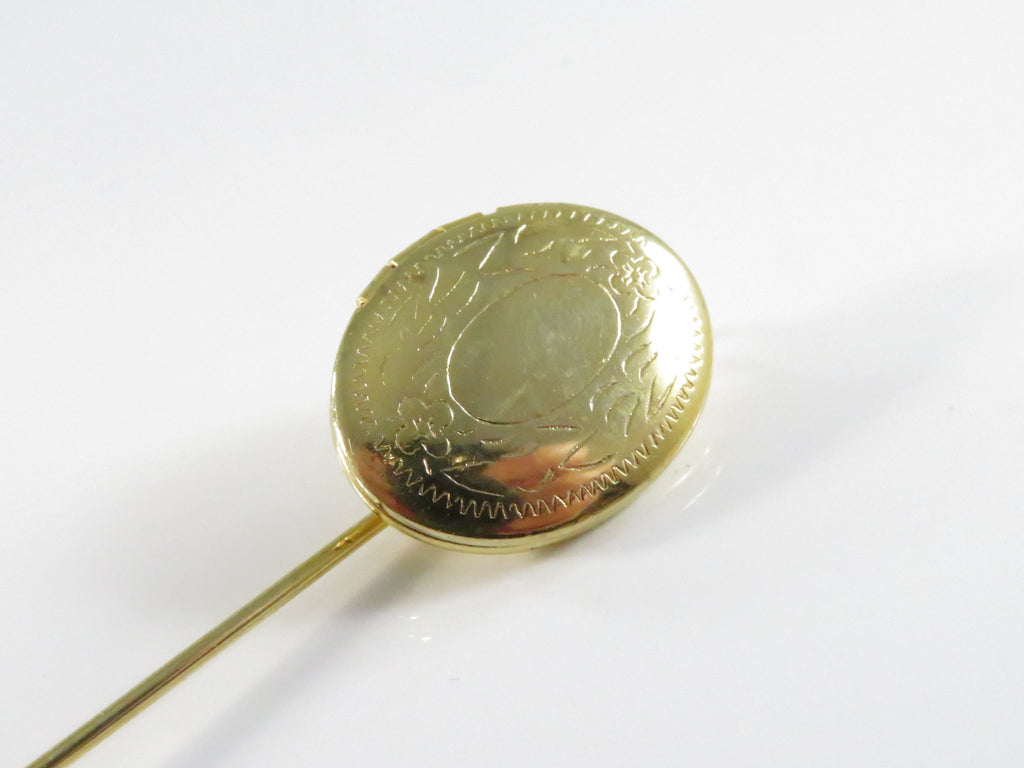 Gold Tone Photo Locket Stick Pin with Cap – Vintage Jewelry