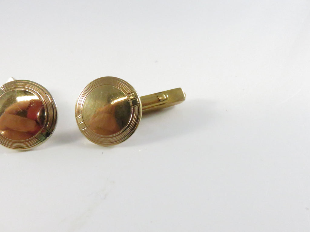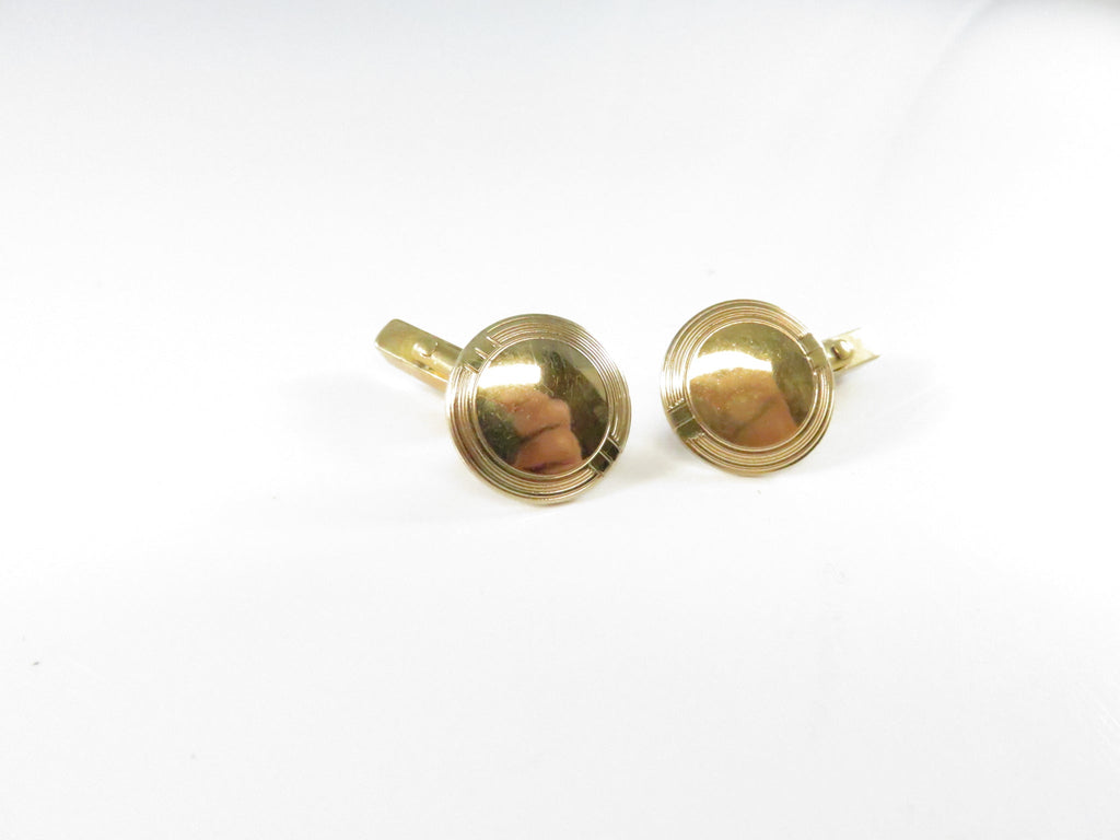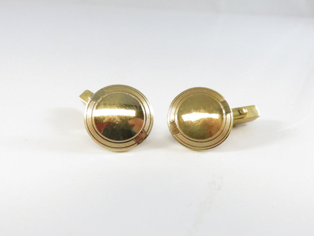 Vintage Swank Gold Tone Round Shield Cufflinks Mid Century