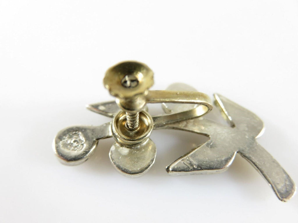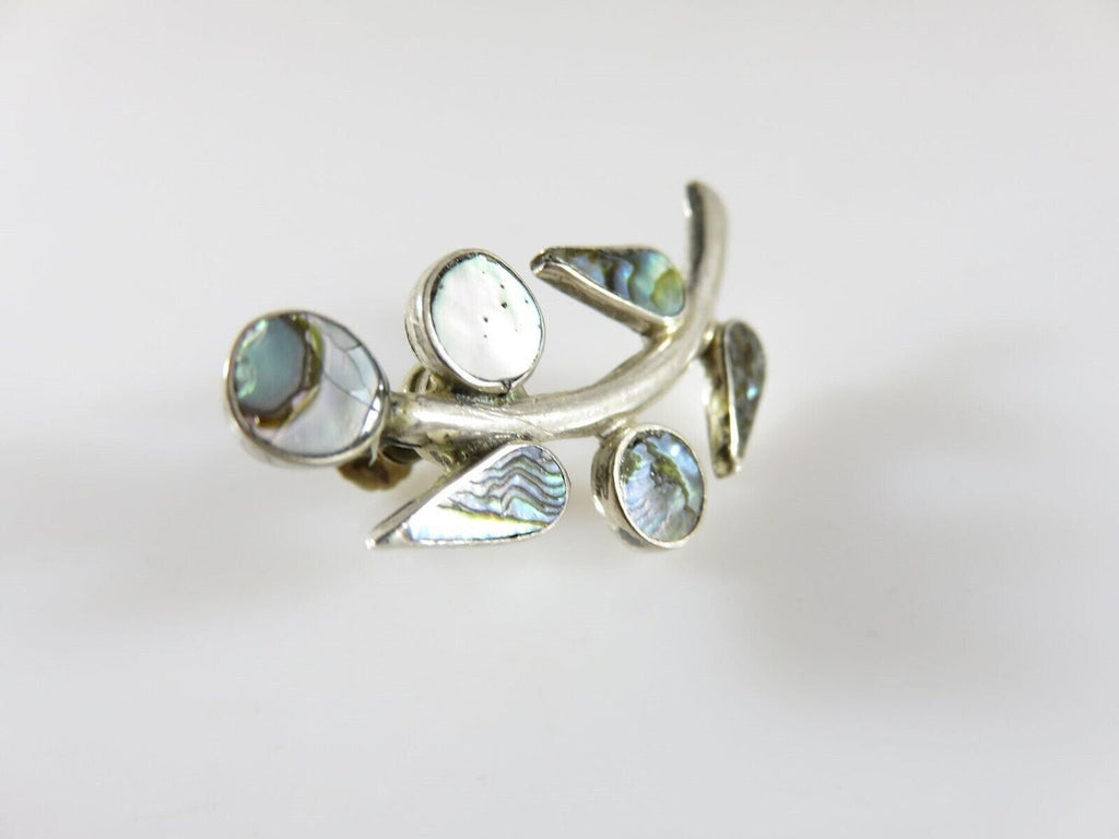 Vintage Unmatched Figural Flower Leaf Stem Abalone & Sterling Single Silver Earring