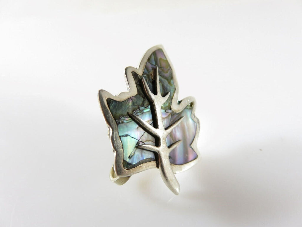 Vintage Unmatched Maple Leaf Abalone & Sterling Taxco Mexico APO Single Silver Earring