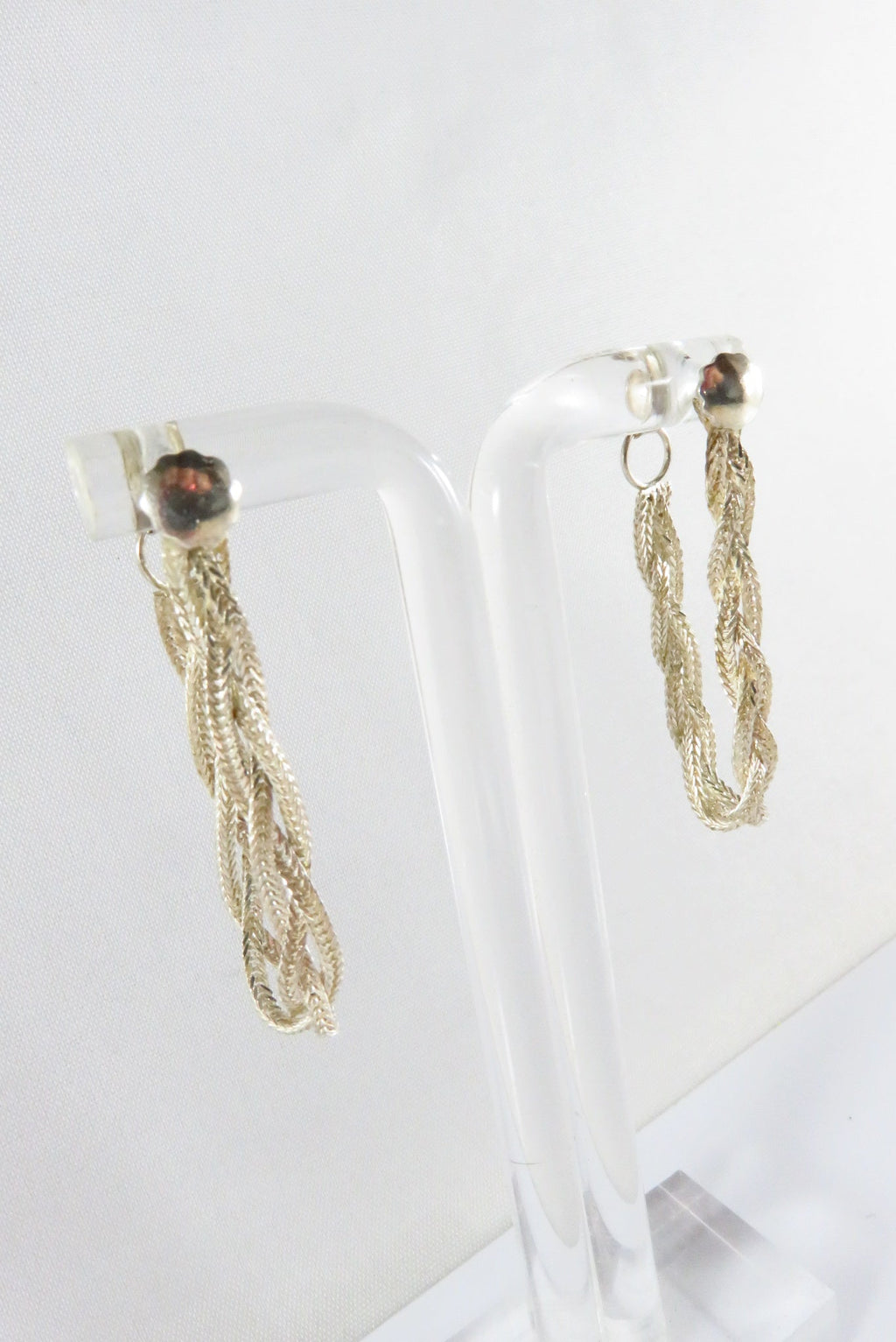 Vintage Woven Sterling Silver Link Chain Earrings 925 Italy 1 1/2" Drop