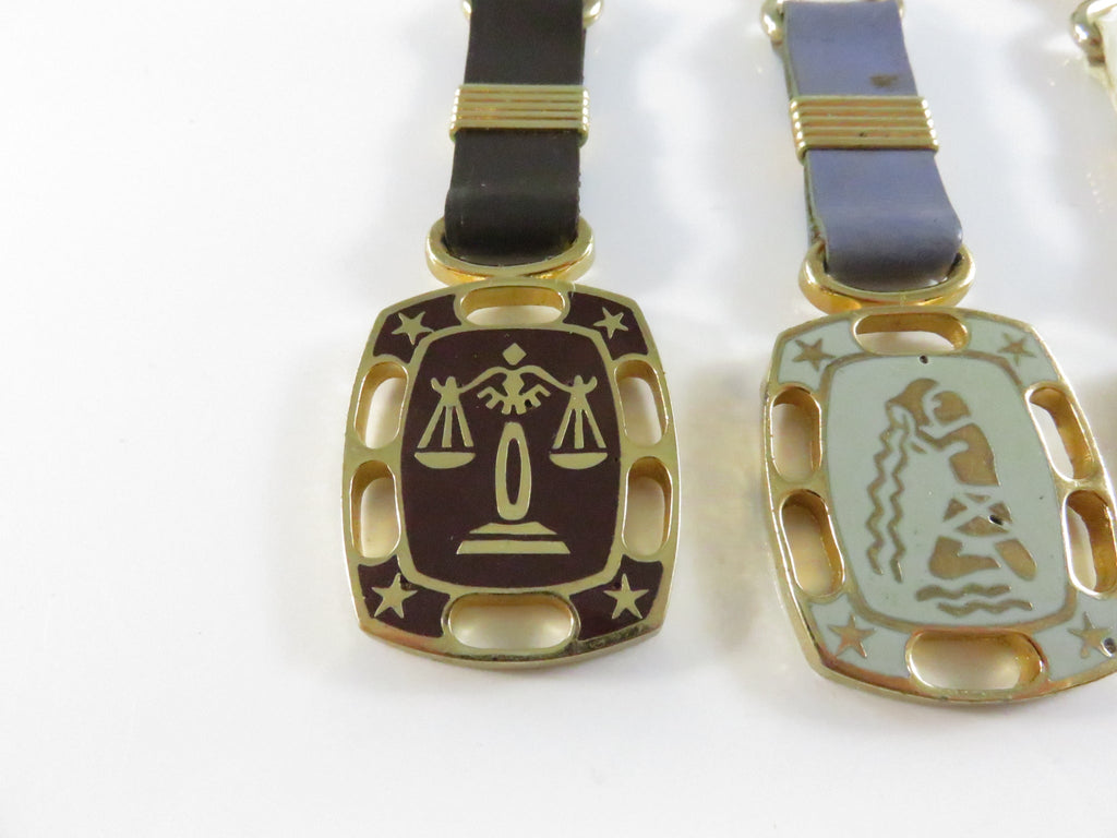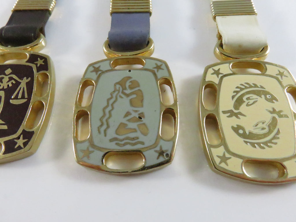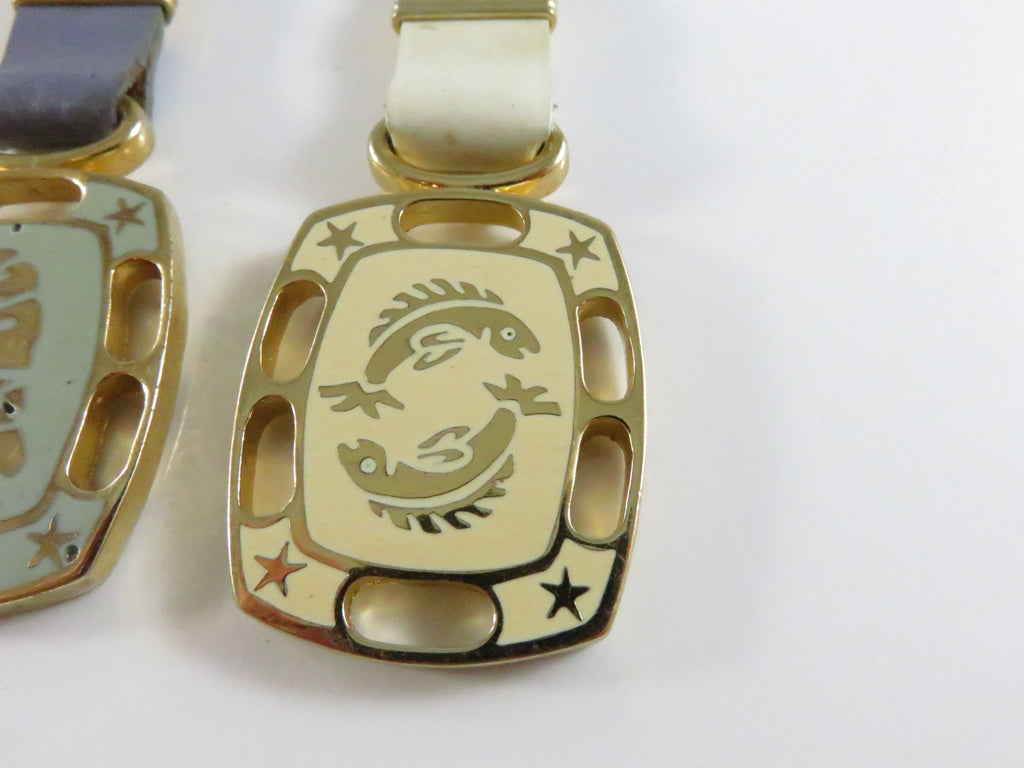 Vintage Swank Zodiac Keychain Set – Libra Aquarius Pisces – Enamel & Gold-Tone Fobs