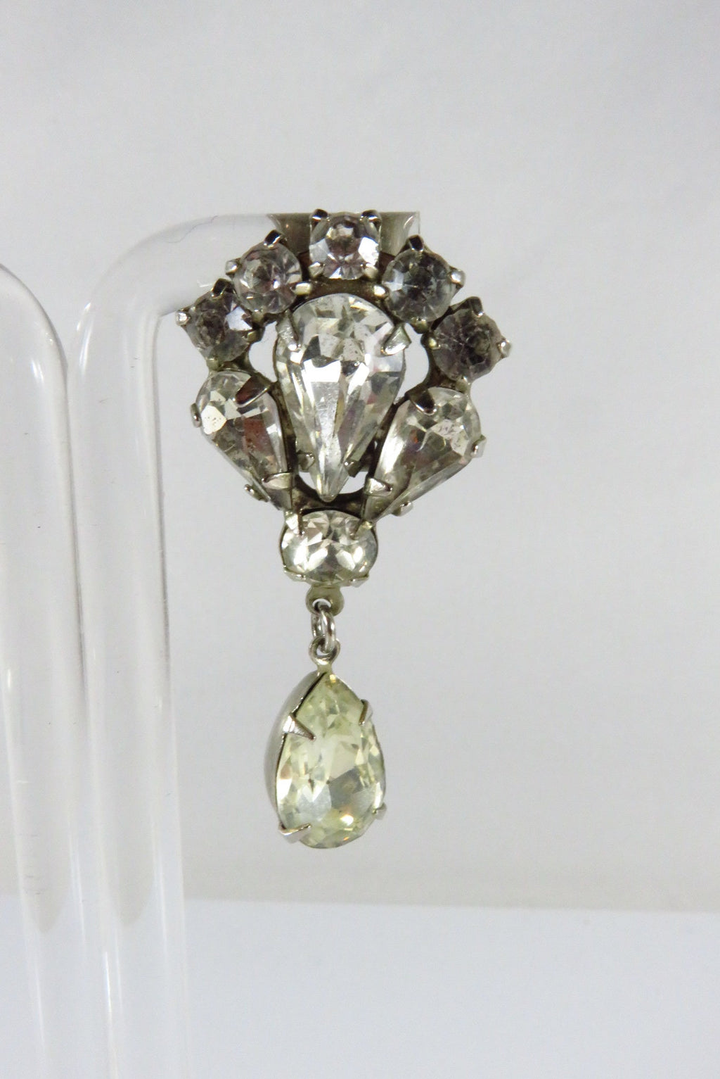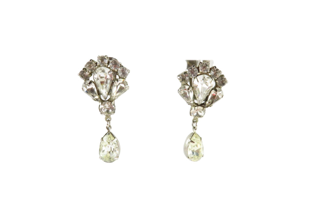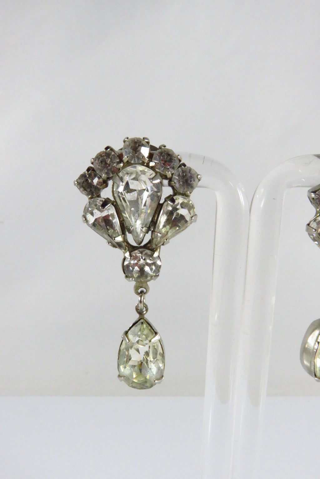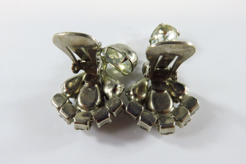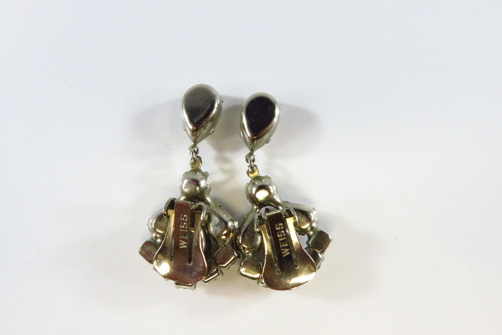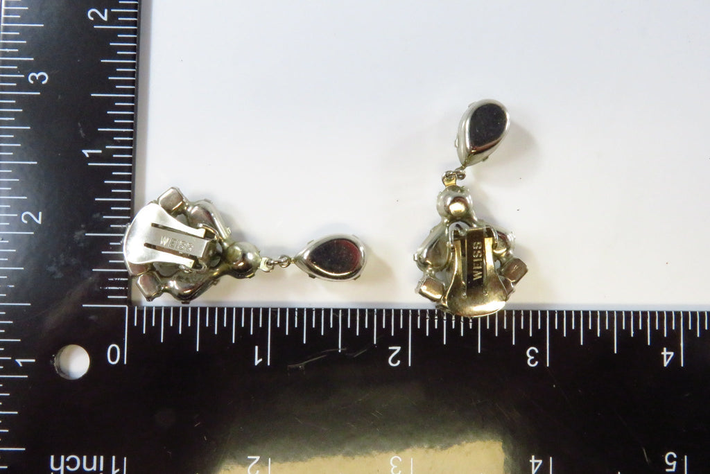 Weiss Clip On Rhinestone White Metal 1 3/4" Dangle Earrings