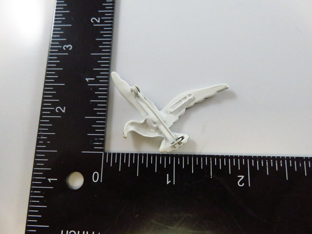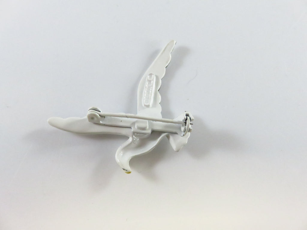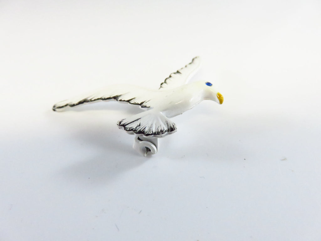 White & Black Seagull Brooch Pin Beach Wear Blue Rhinestone Eye by Gerry's