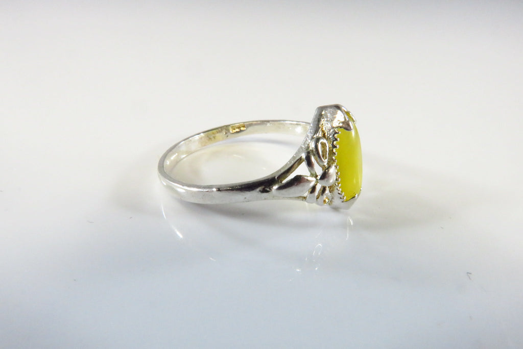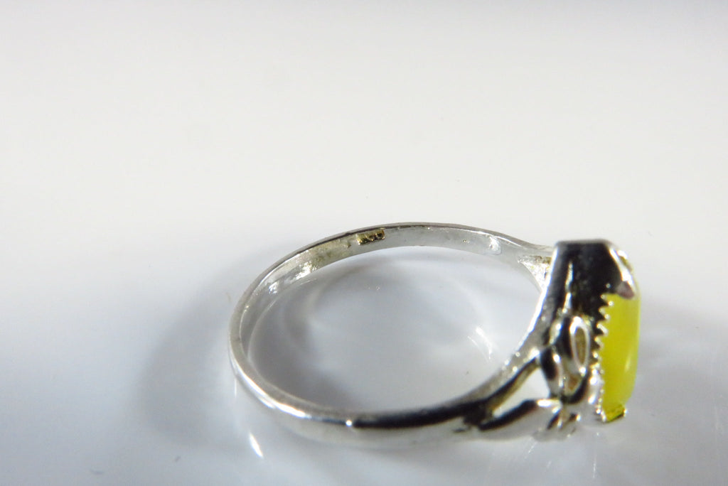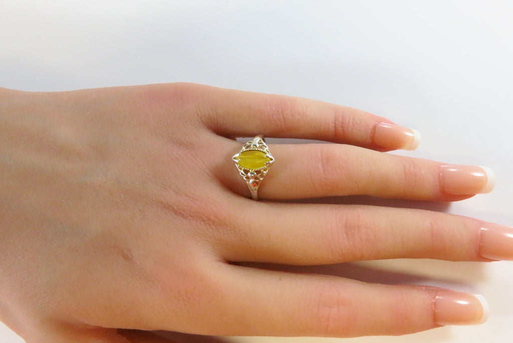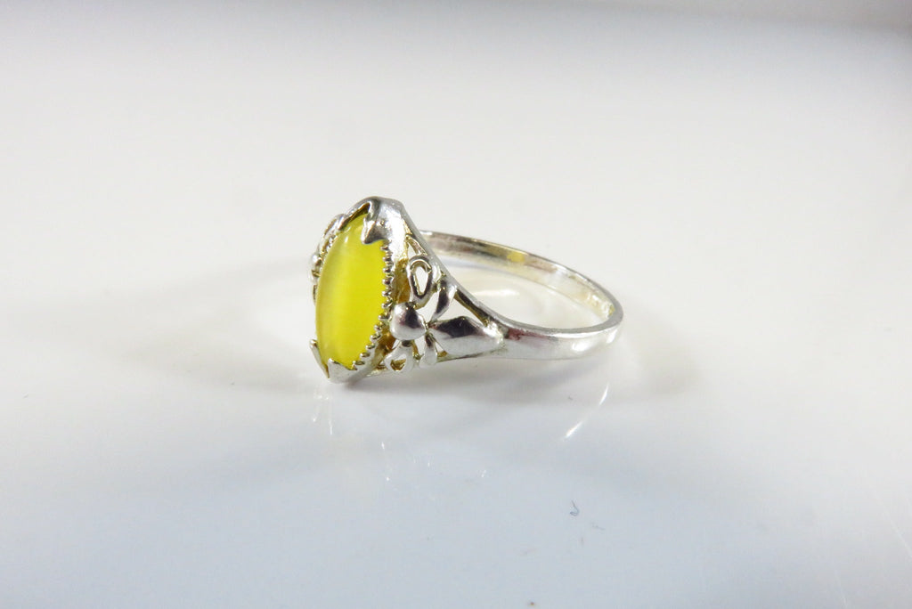 Yellow Glass Marquise Cabochon Pierced Setting White Metal Ring Size 8.25