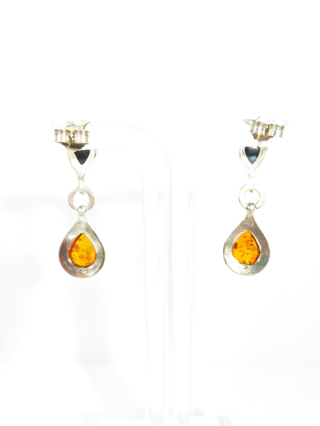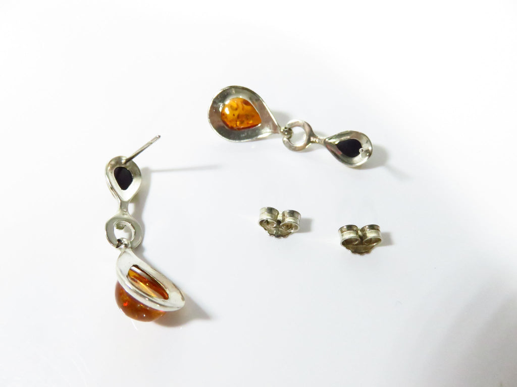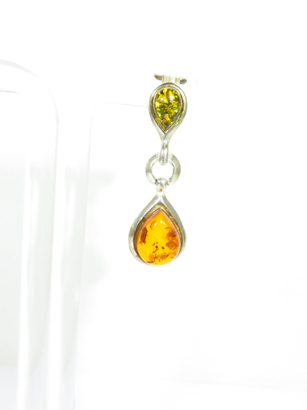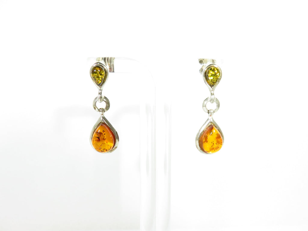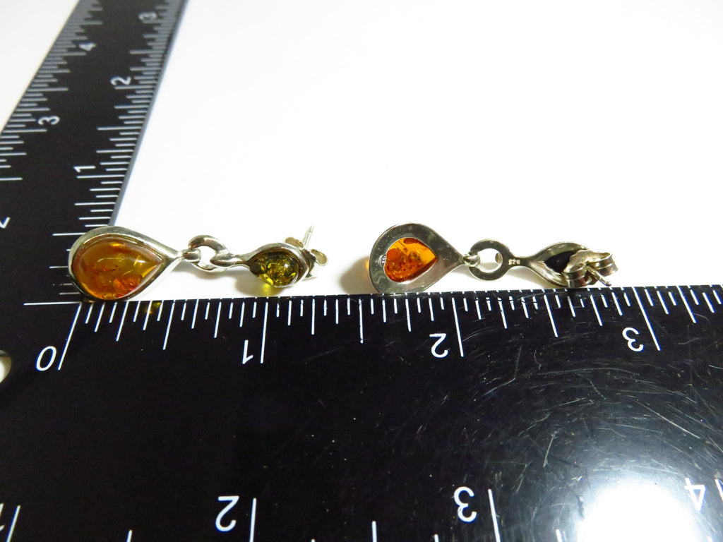 Yellow & Honey Baltic Amber Dangling Earrings Sterling Silver 1 1/4" Drop