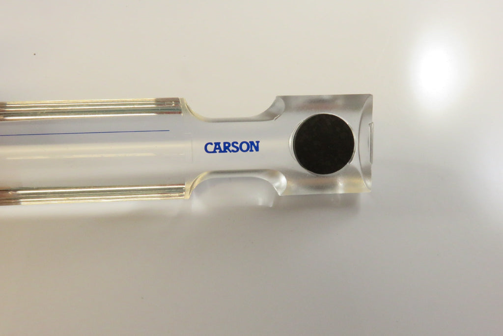 Made by Carson, this is a pre-owned magnetic bar magnifier. Measures 8 1/8" across with a reading area width of about 6 1/4". Great for reading cross stitch patterns, papers or books. Light wear with minor scratching.