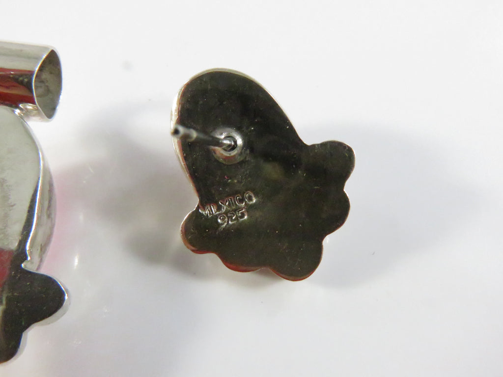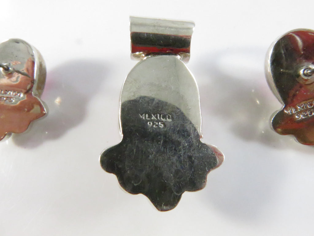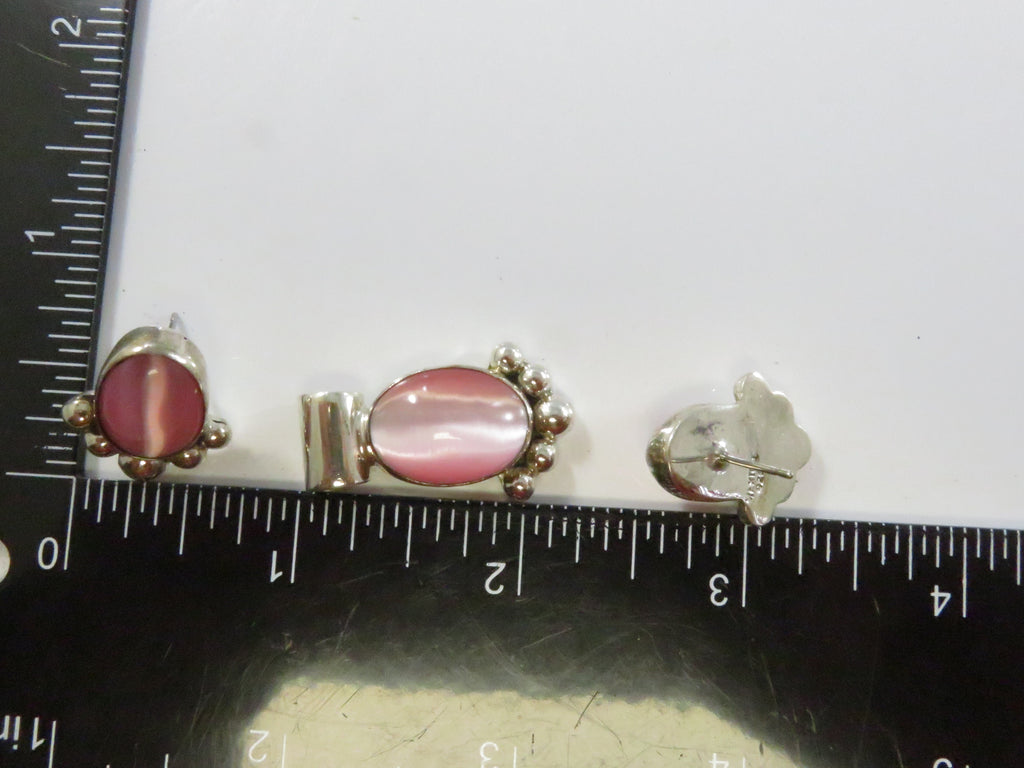 Vintage Mexico 925 Sterling Silver Pink Cat’s Eye Glass Pendant & Earrings Set, Taxco Style