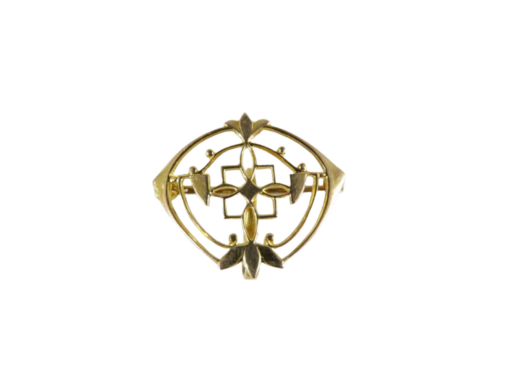 10K SM&S Art Nouveau/Edwardian Pendant Watch Pin, Openwork Floral, c.1900