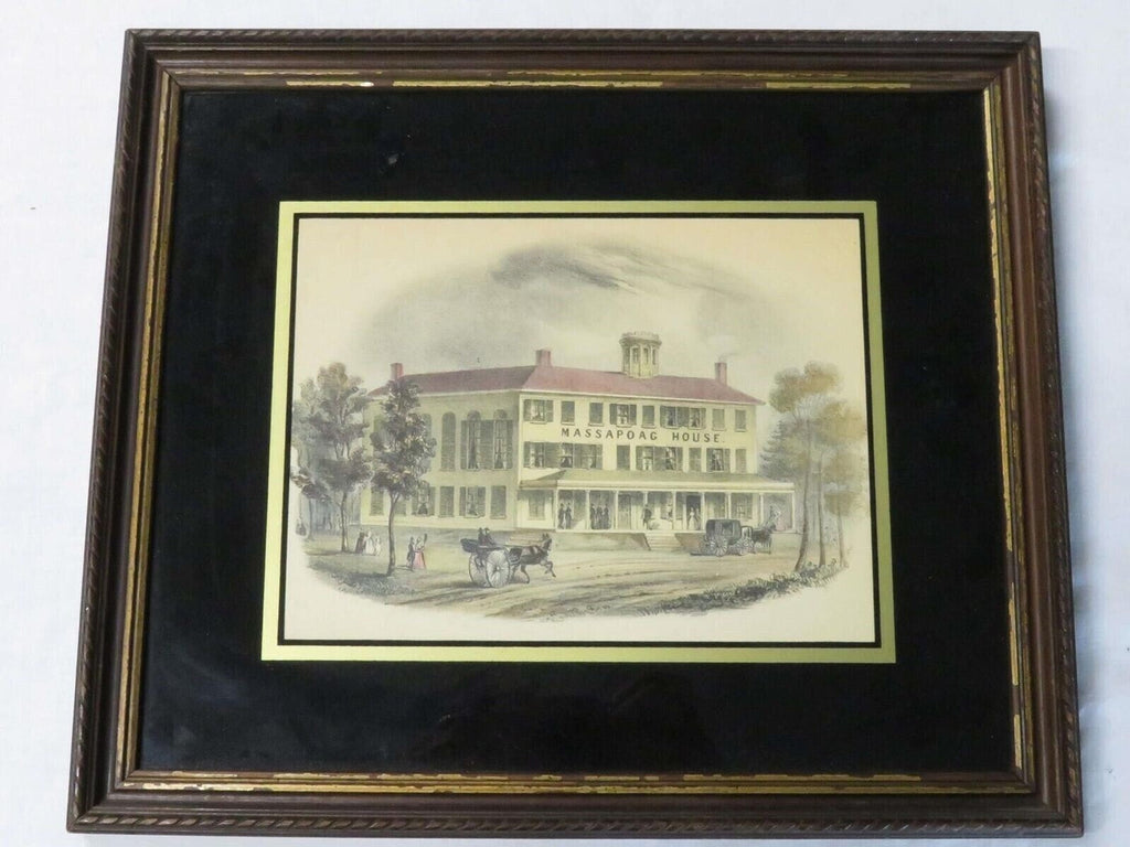 Antique The Massapoag March Massapoag House Opening Eglomise Glass Colored Print