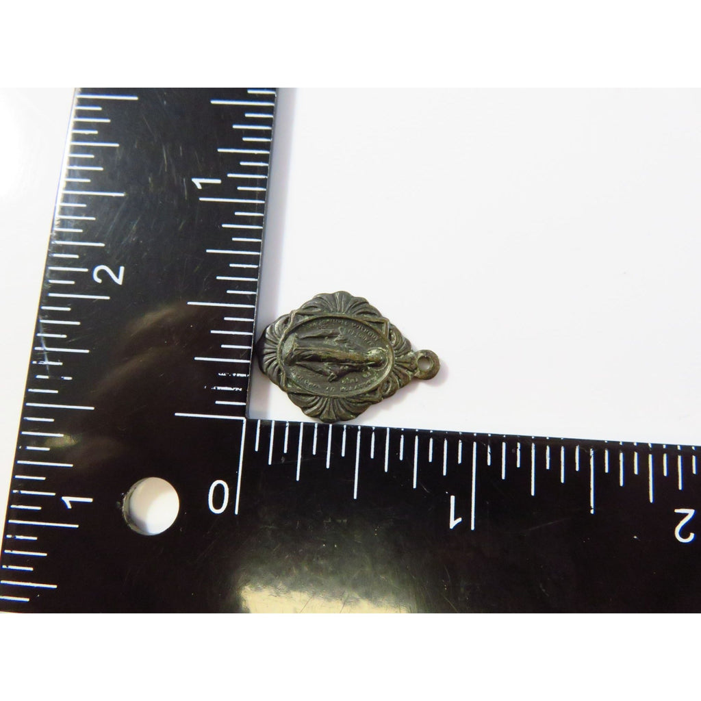 Antique Miraculous Medal Of Mary Catholic Rosary Pendant From Italy 7/8"