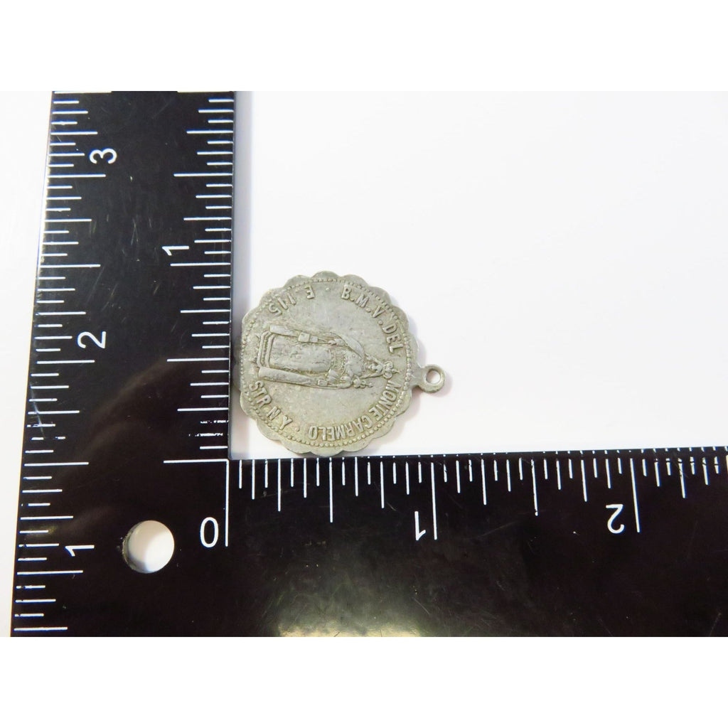 Antique Our Lady Of Mount Carmel Catholic Medal Pendant Aluminum 1" Religious Medallion Maria SS. Incoronata