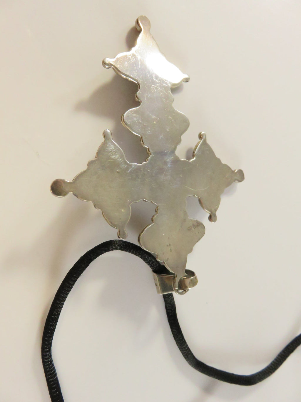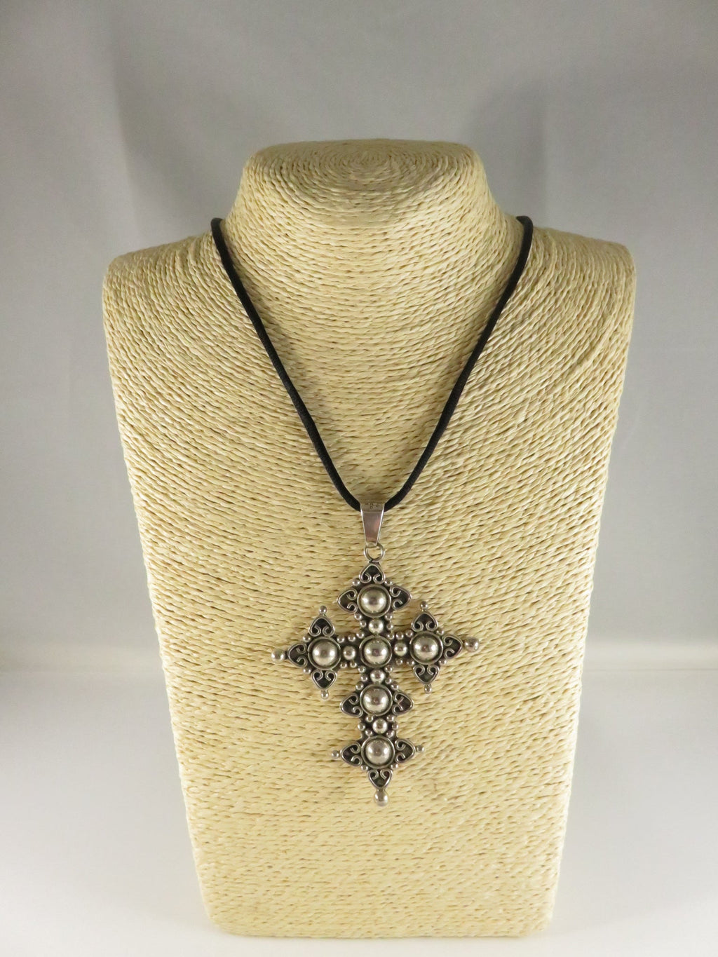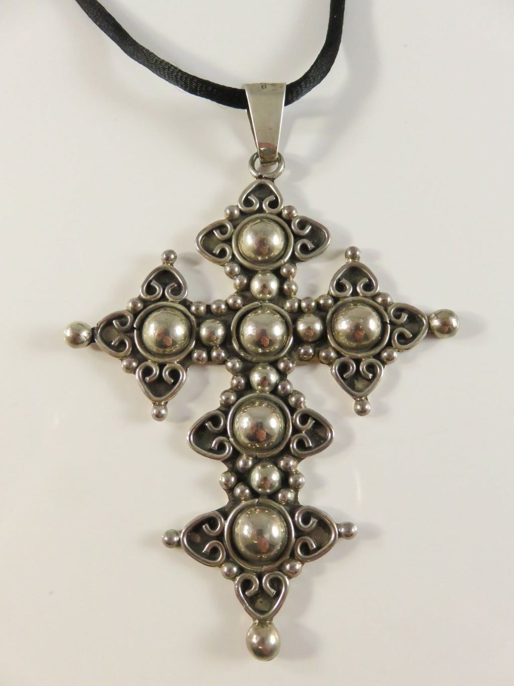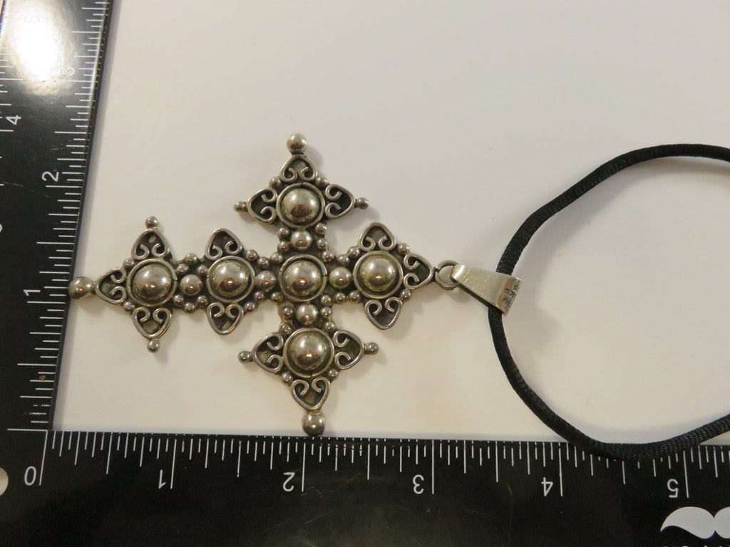 Large Sterling Silver Cross Pendant, Mexican Design, 3 5/8", Vintage Style