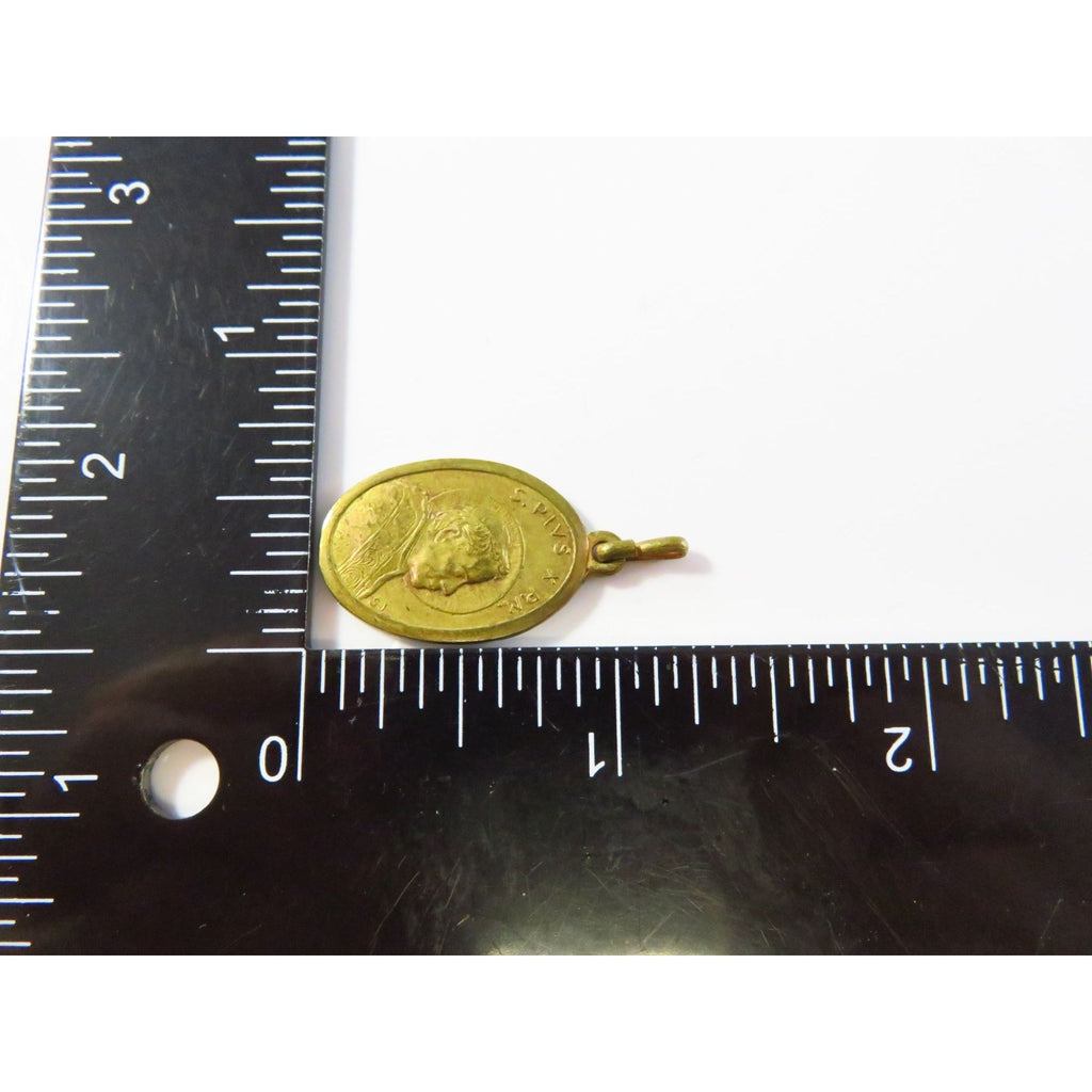 Vintage 1954 Blessed Sacrament Medal With Saint Pope Pius X Image Gold Tone Catholic Pendant
