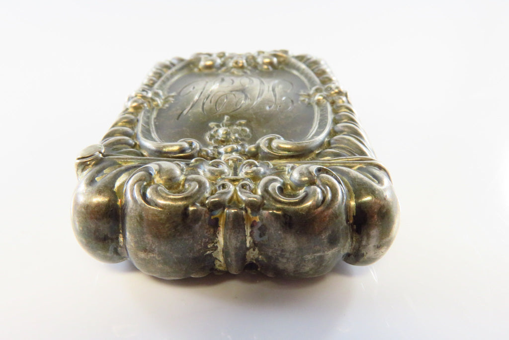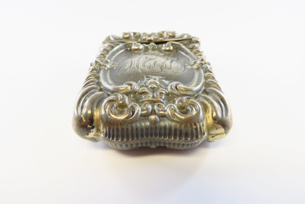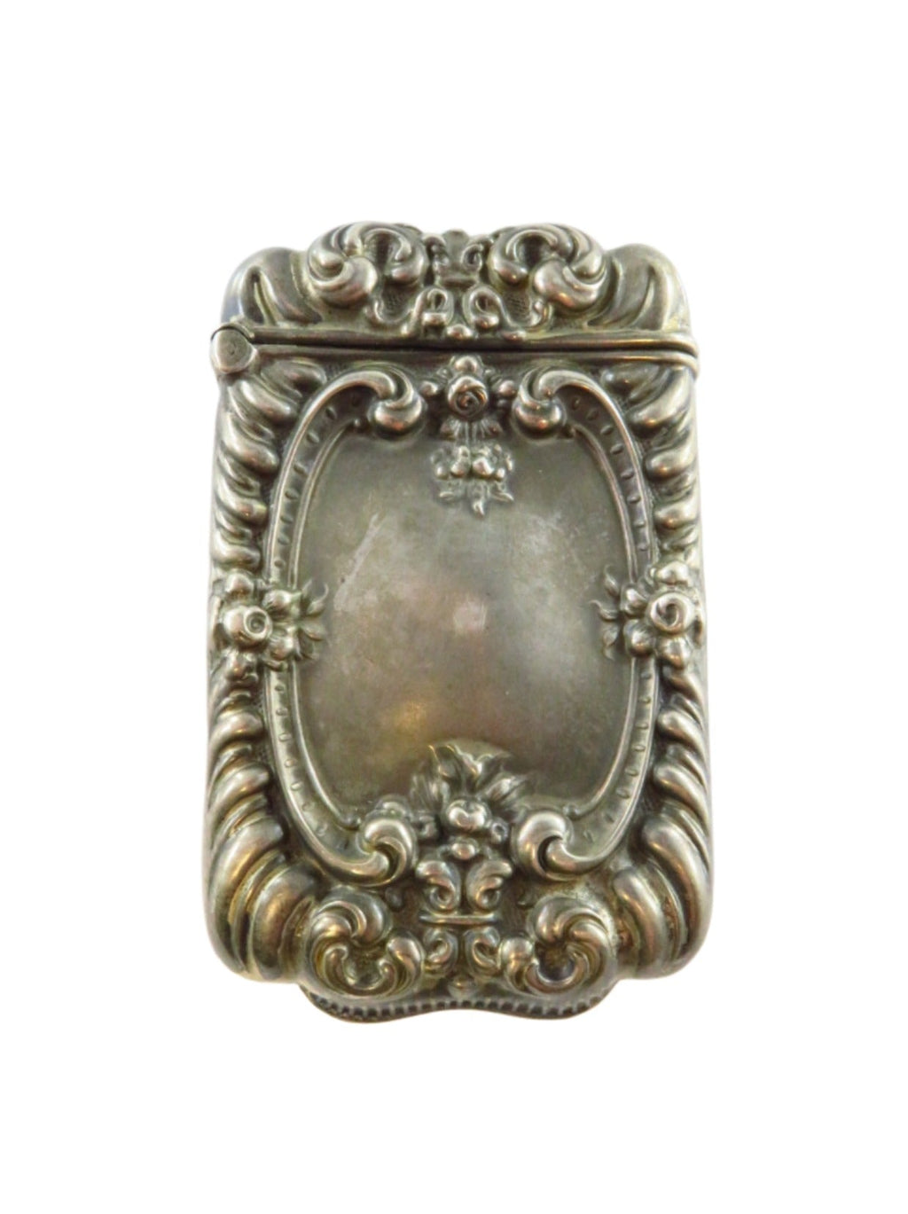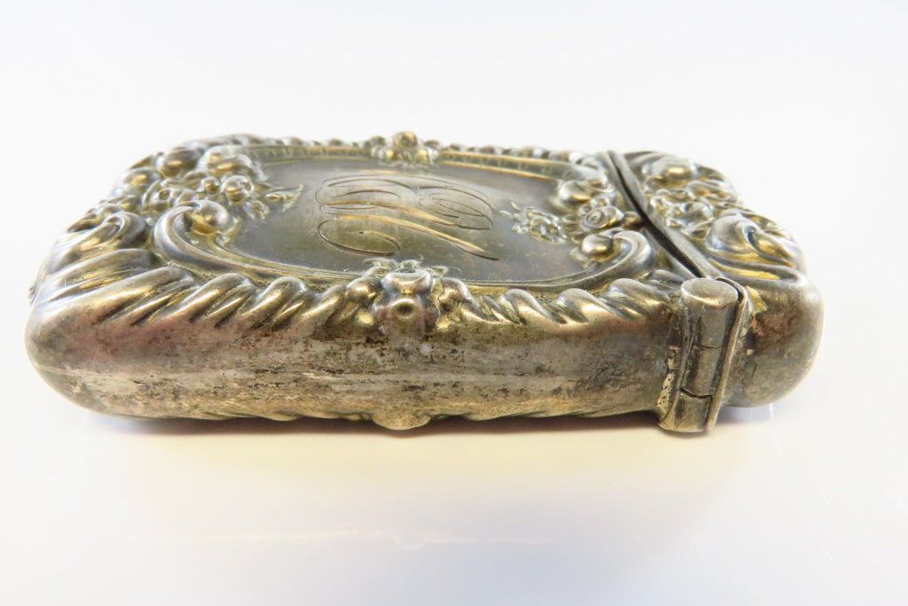 Antique Repousse Sterling Silver Match Safe 2 5/8 x 1 5/8
