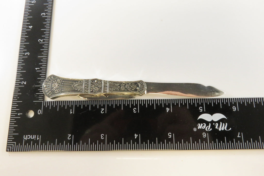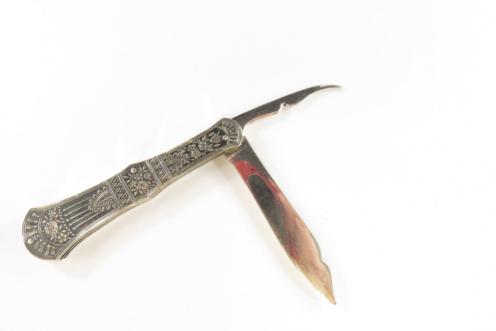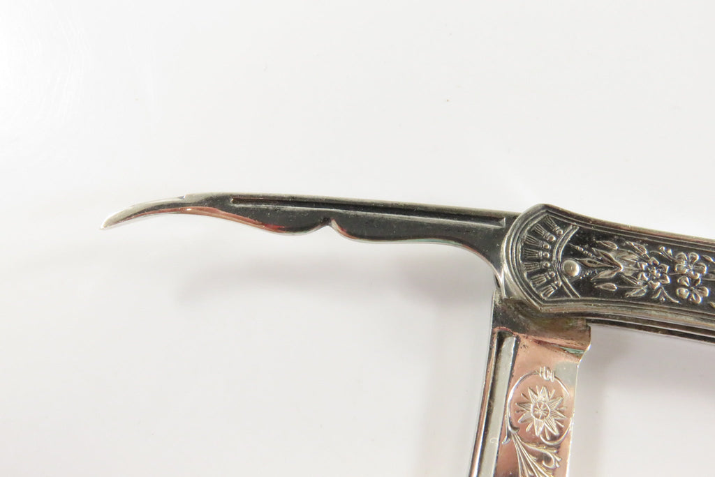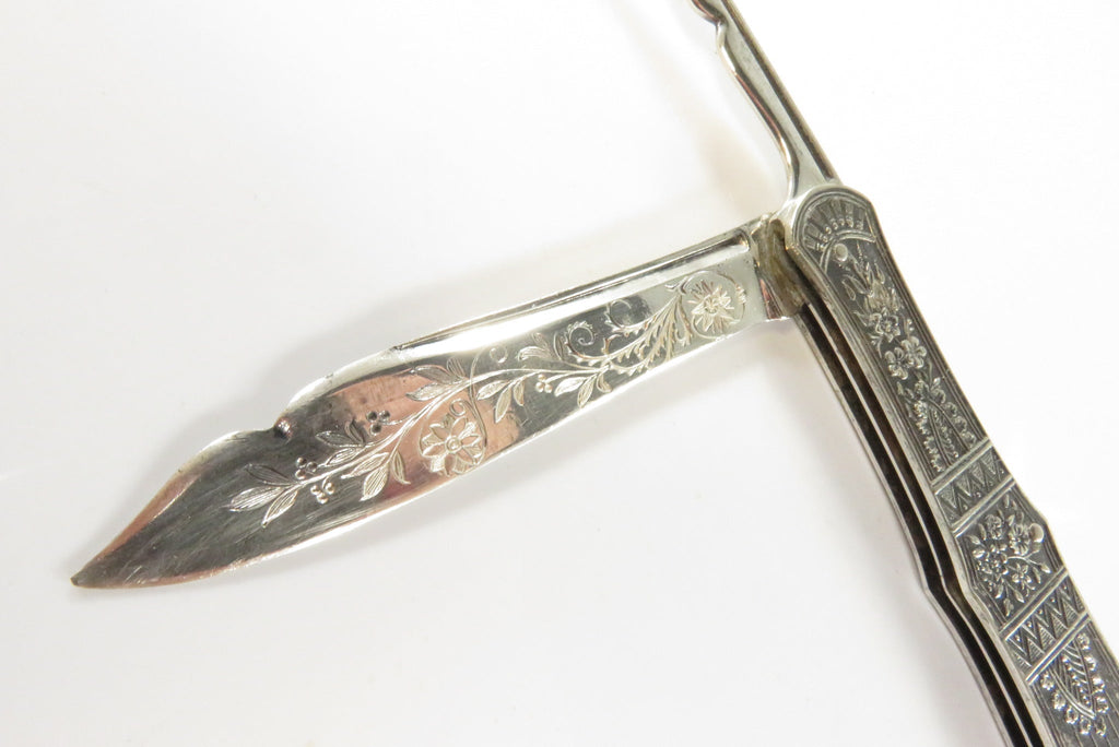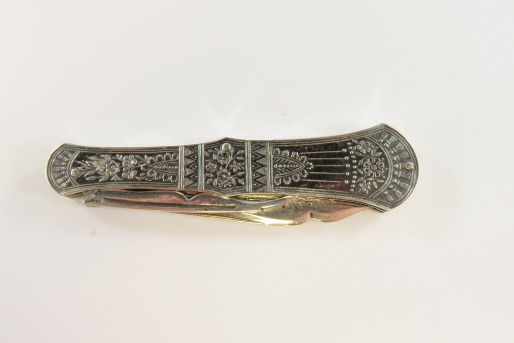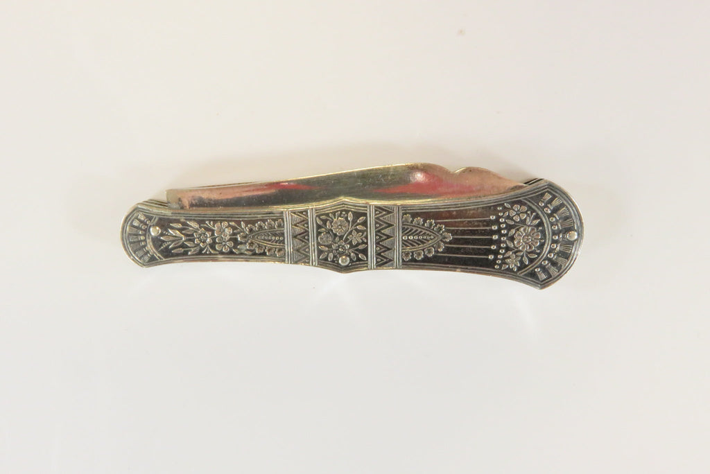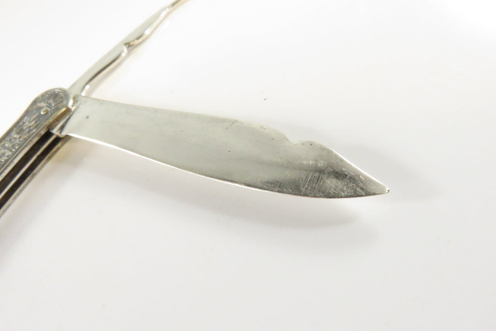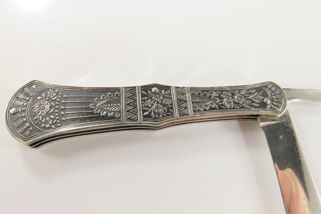 Antique Victorian Silvered Fruit Knife Fancy Grips 3 1/4" Closed