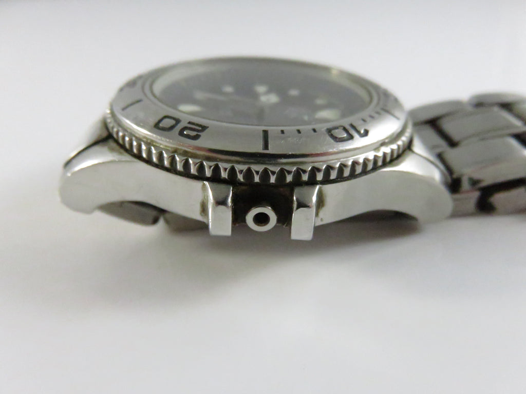 Elgin Steel PQS 5 ATM Japan Quartz Diver Watch Black Dial Date 40mm Stainless Bracelet Men's Sport Japan Made
